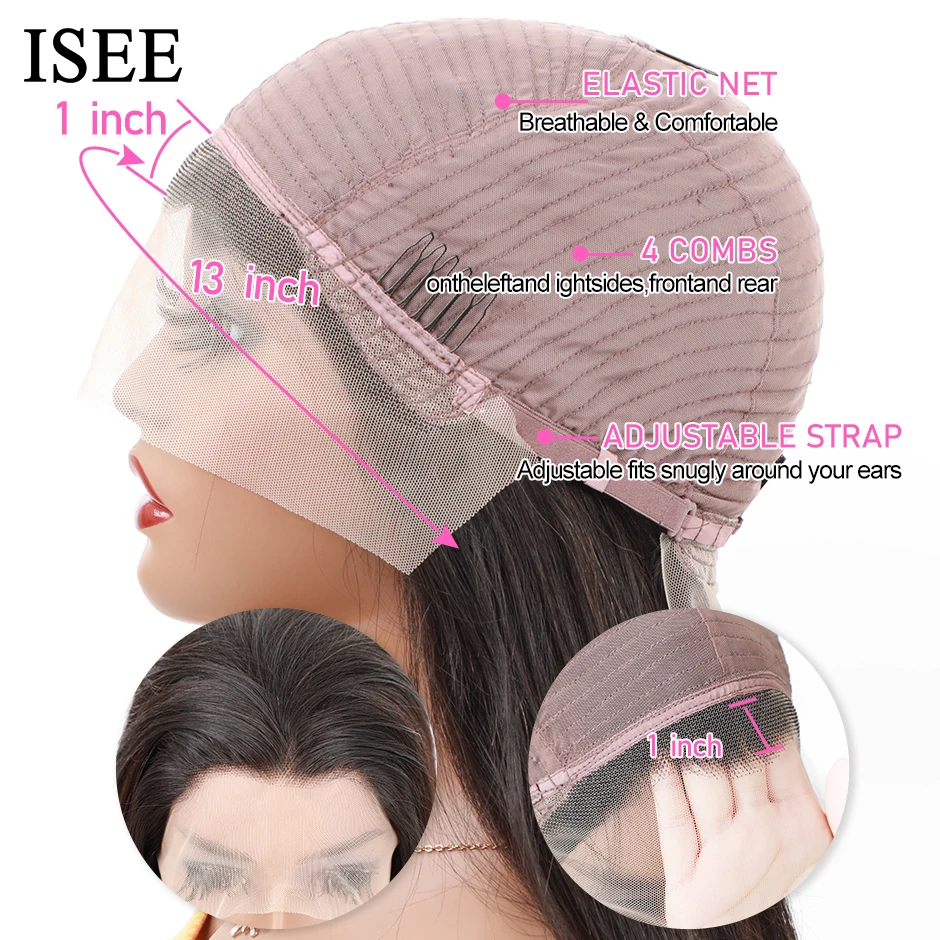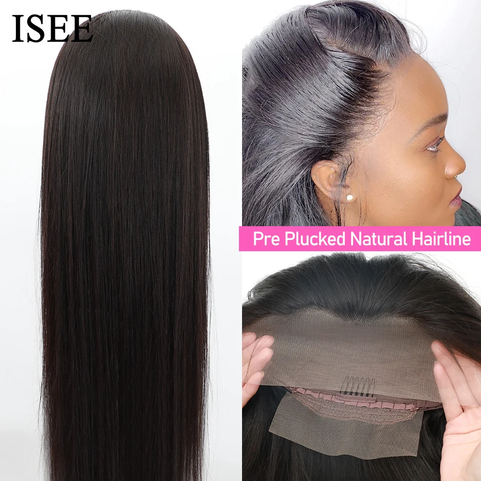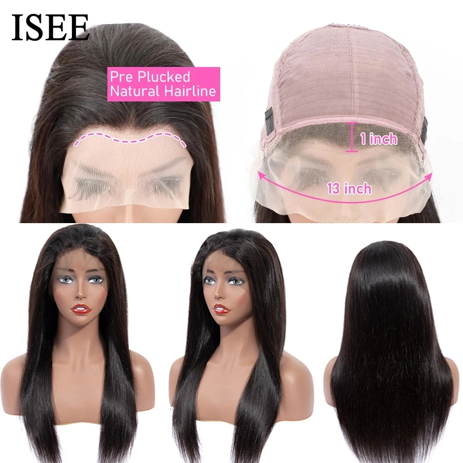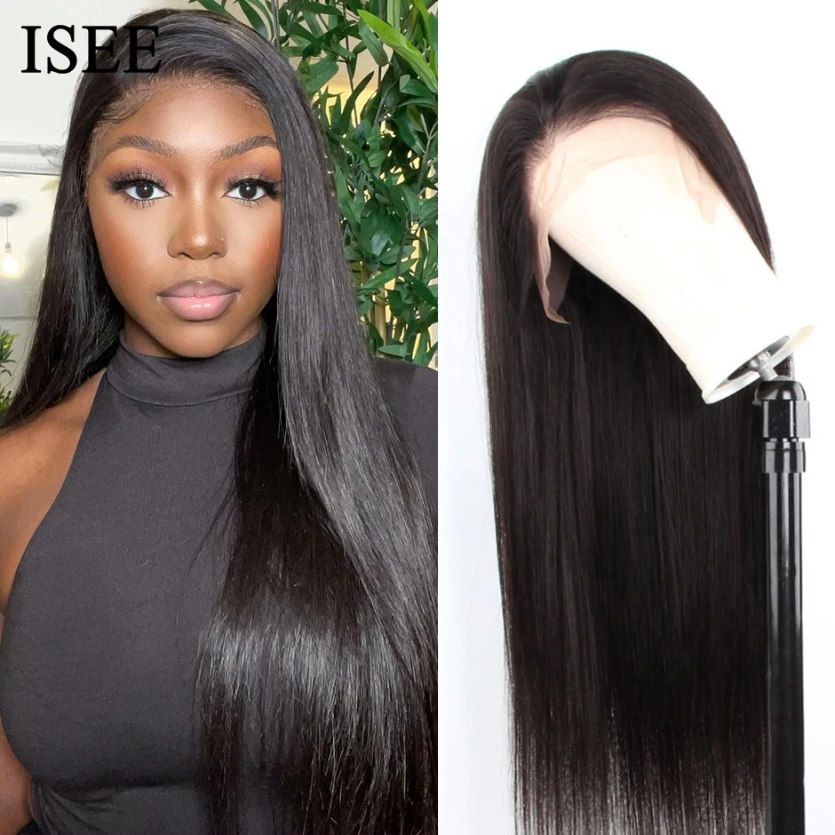 Парик ISEE из прямых человеческих волос с кружевной частью, парики для женщин 13X1, парик из человеческих волос на сетке, малазийские прямые парики машинной работы