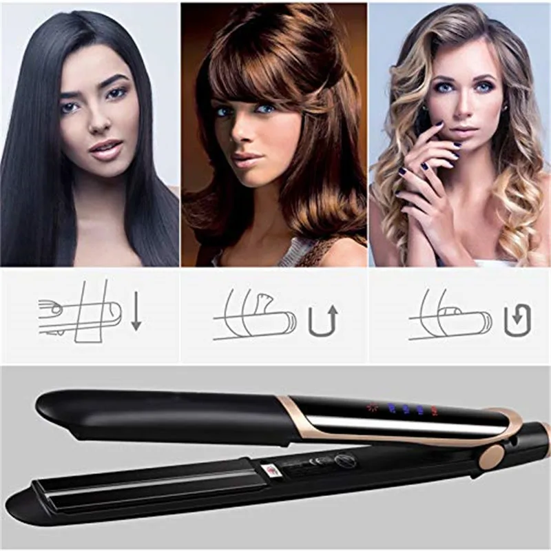Выпрямитель для волос, утюжок с инфракрасным излучением, с отрицательными ионами, профессиональная плойка для гофре, светодиодный дисплей