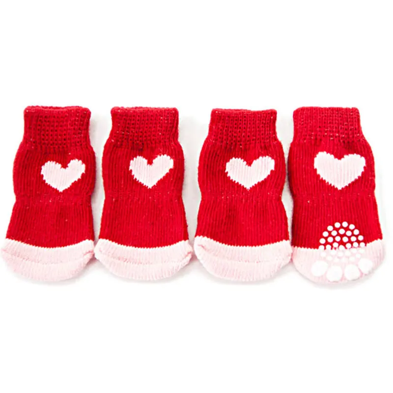 Носки для щенков 4 шт.компл., Нескользящие вязаные носки с бантом в виде сердечек, теплая обувь для щенков, ботинки для маленьких и средних собак, товары для домашних животных