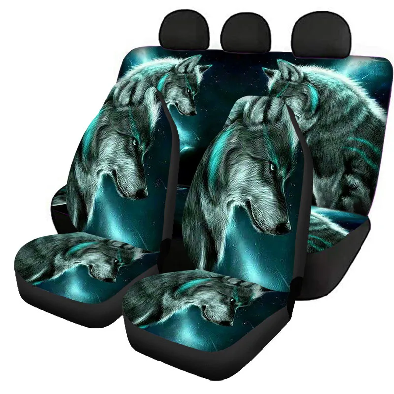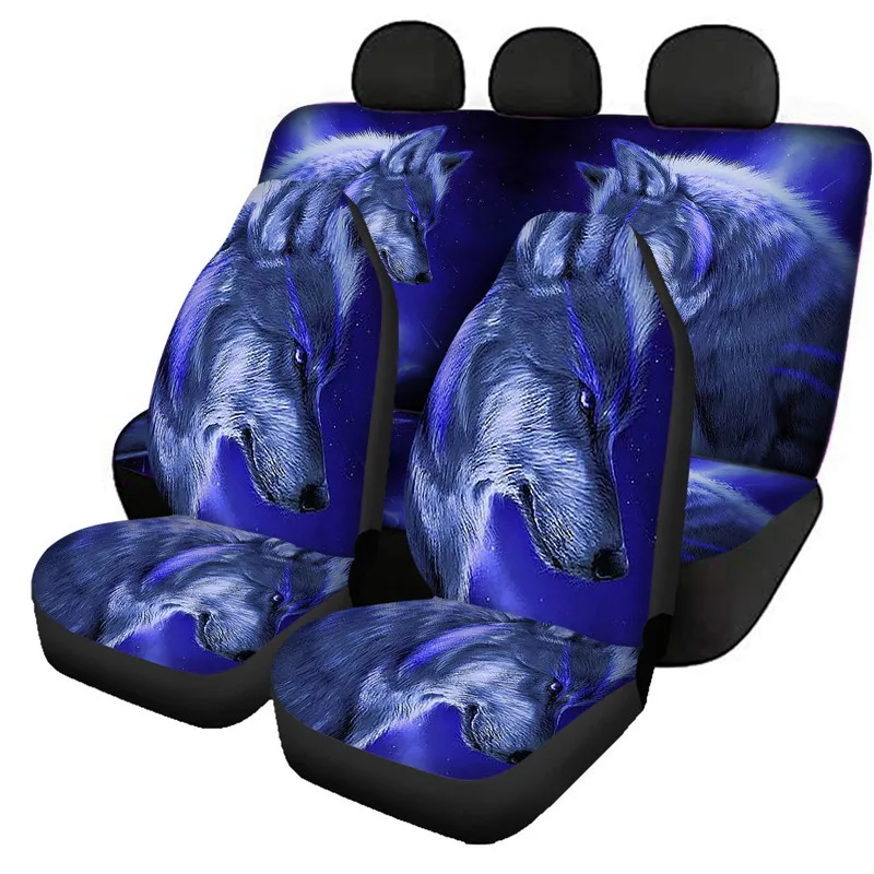 Чехол для переднего и заднего сиденья автомобиля с 3D рисунком волка 4 шт.компл.