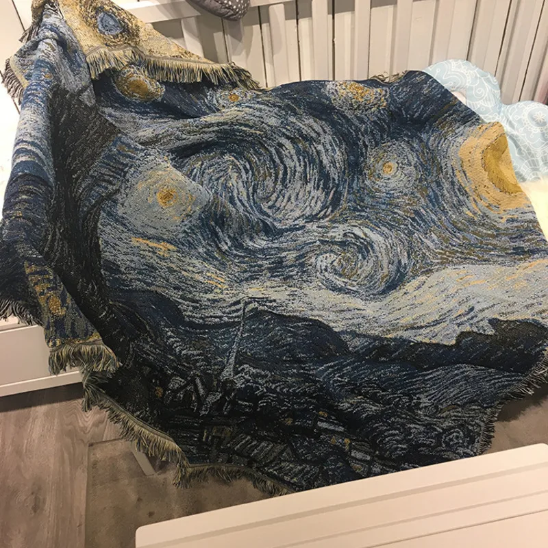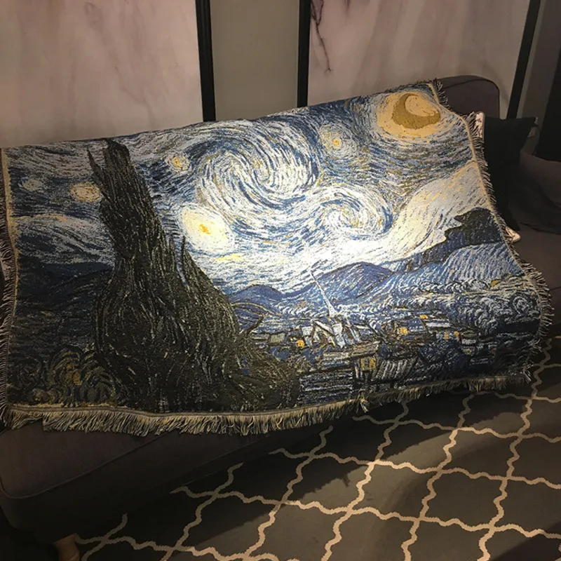 Декоративное одеяло с изображением звездного неба Ван Гога, покрывало для дивана, стула, покрывало для кровати, вязаный коврик