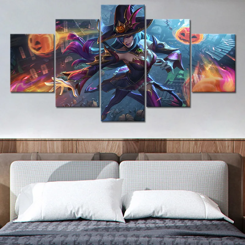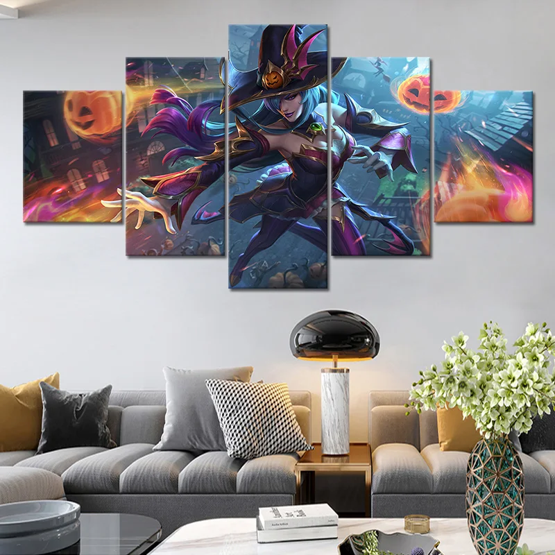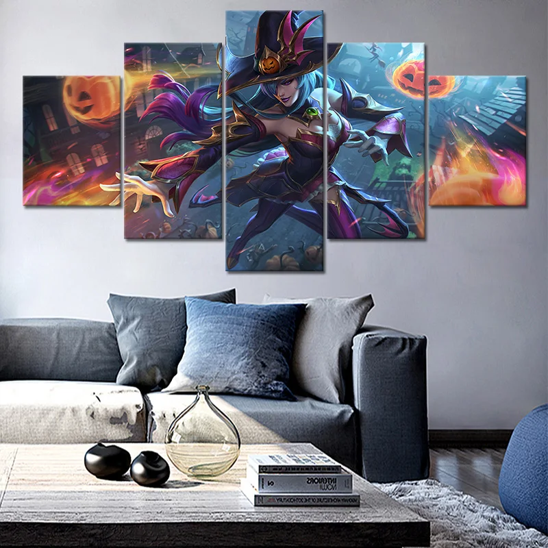 Модульные картины с аниме Akali KDA LOL, 5 панелей, HD принты, плак...