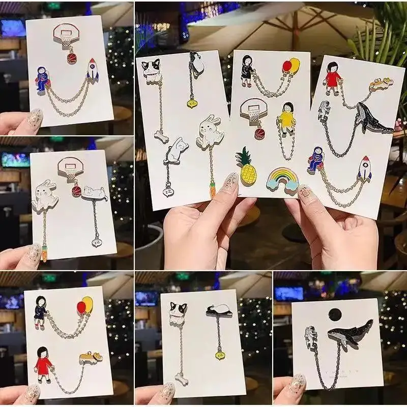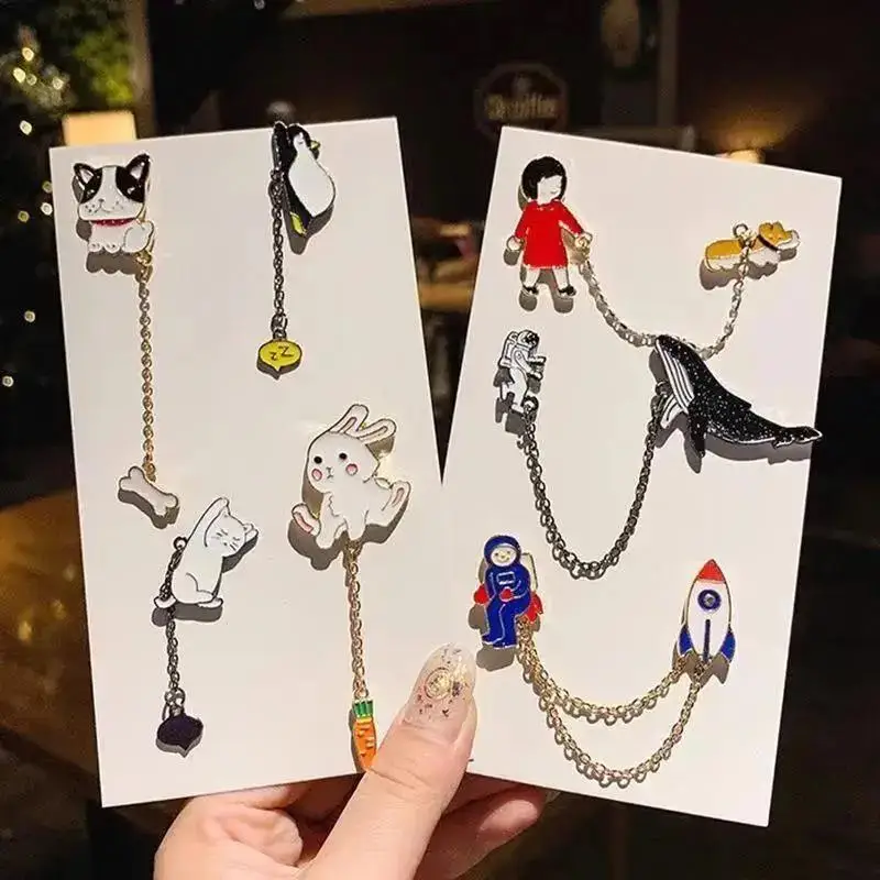Металлические значки, цепочка, серия, брошь, модные, разные серии цепочек, эмалированные лацканы, новый стиль, милая девушка, Мультяшные аксессуары