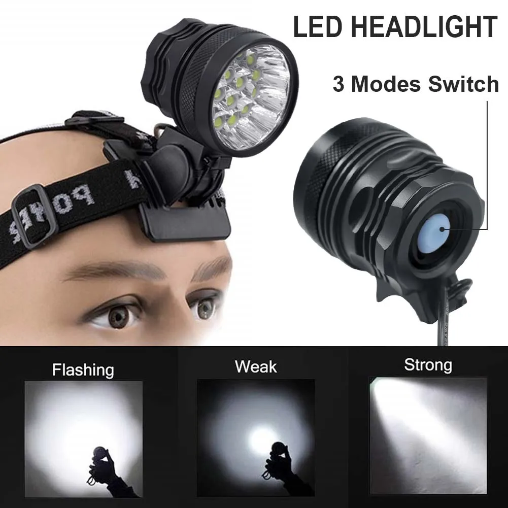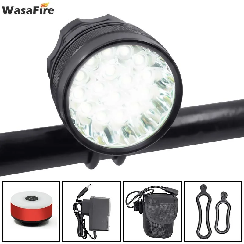 Фонарь светодиодный велосипедный передний, 18650 лм, с зарядкой и задним фонарем