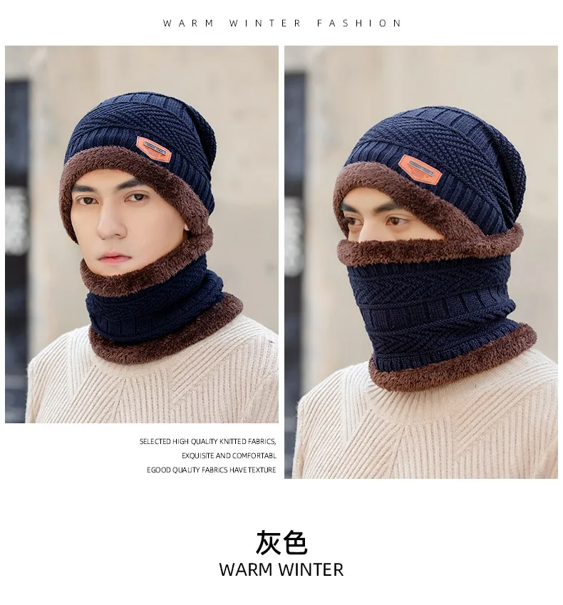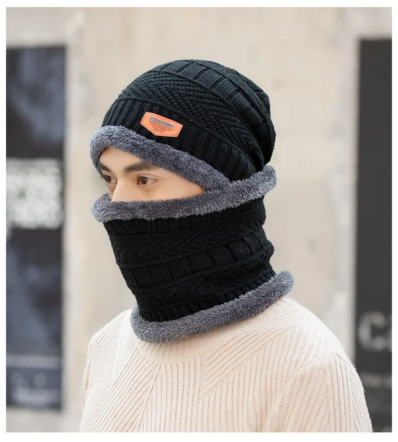 Зимняя Шапка-бини для мужчин, флисовый шарф для женщин и мужчин, вязаный толстый шерстяной шарф-бини, Балаклава, маска, шапочки, облегающие шапки