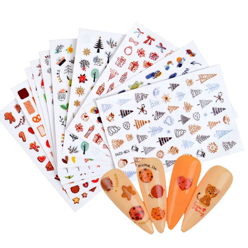 Новый дизайн 2021, рождественские наклейки для ногтей, клейкие 3D наклейки для ногтей, фольга, художественное оформление ногтей, мультяшная наклейка, товары для маникюра