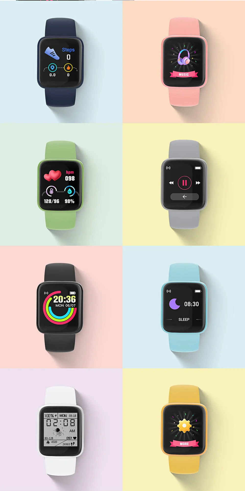 Версия обновления батареи.В два раза лучше, чем другие!Последняя обновленная версия, поместите фотографию на часы и управление музыкой!Новейшая обновленная версия, управление музыкой, изменение фотографий, каждая в пластиковой коробке, реальный запас!ПараметрыМодель: Y68 Pro/D20 ProЦвет: цвет макаронДисплей: 1,44 дюймов IPS TFTРазрешение: 240*240Тип сенсора: Полное касаниеВерсия BT: BT4.0 или вышеВодонепроницаемость: IP67 водонепроницаемый и пыленепроницаемый (не поддерживает плавание и принимать душ).Время работы в режиме ожидания: 4-7 дней нормального использования;За последние 30 дней стандарт, основанный на 230 мА · чПриложение: FitProОсобенностиМультиспортивный режим: Поддержка ходьбы, бега, велоспорта, альпинизма и т. д.Мониторинг шагов, расстояния, калорий, шагомераПульс, Мониторинг Артериального Давления, качество сна, напоминание о сидячем положении и т. Д. Обратите внимание на ваше здоровье все время, так что вы можете иметь здоровую и удобную жизнь.Напоминание о звонкеУведомления в социальных сетях: Синхронизация всех телефонных уведомленийБыстрая зарядка от USB: Новый брэндовый браслет метод зарядки, быстрая зарядкаСъемный дизайн браслета, может быть заряжен при подключении к usb-интерфейсу, устраняя проблемы при переноске зарядного кабеля и подставки для зарядки.БудильникЗащита от потериПульт дистанционного управленияПоддержка мобильной версии: Android 4,4 и выше; IOS8.0 и выше;Поддержка Bluetooth.Язык приложения: английский, французский, итальянский, японский, корейский, польский, португальский, русский, упрощенный китайский, испанский, традиционный китайский и т. д.Язык часов: английскийСписок посылка-Умные часы с браслетом * 1-Руководство пользователя * 1Примечания1.Пожалуйста, заряжайте его в течение 2-3 часов после получения.После длительной доставки у него не было электричества.2.Пожалуйста, не сравнивайте с больничным оборудованием для чтения, это не медицинское устройство!3.Если часы не могут быть stat rup, пожалуйста, зарядите их 5-10 мин перед использованием.4.Если у вас есть какие-то вопросы, вы можете прочитать руководство или обратиться в службу поддержки клиентов.Желаю вам приятных покупок!
