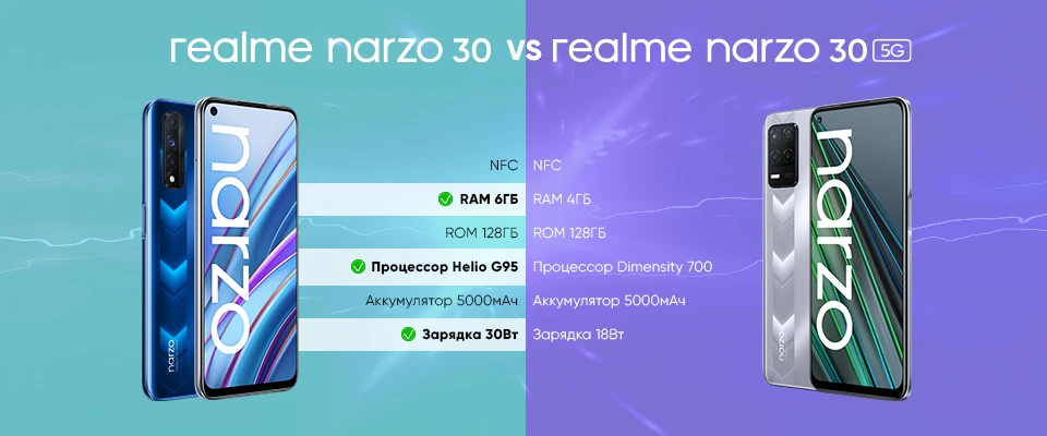 Смартфон realme narzo 30 4G, Helio G95 восемь ядер, NFC, 90 Гц, 6,5 дюйма, FHD +, DotDisplay, 5000 мАч, 48 МП Тройная камера, 30 Вт, зарядка Дротика