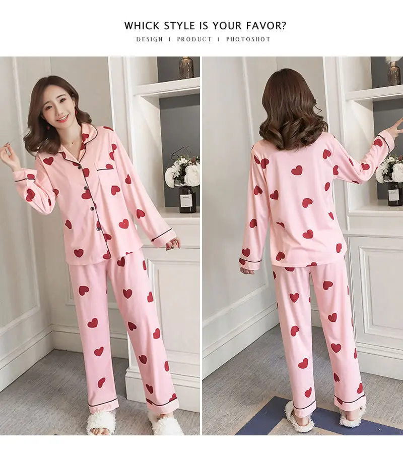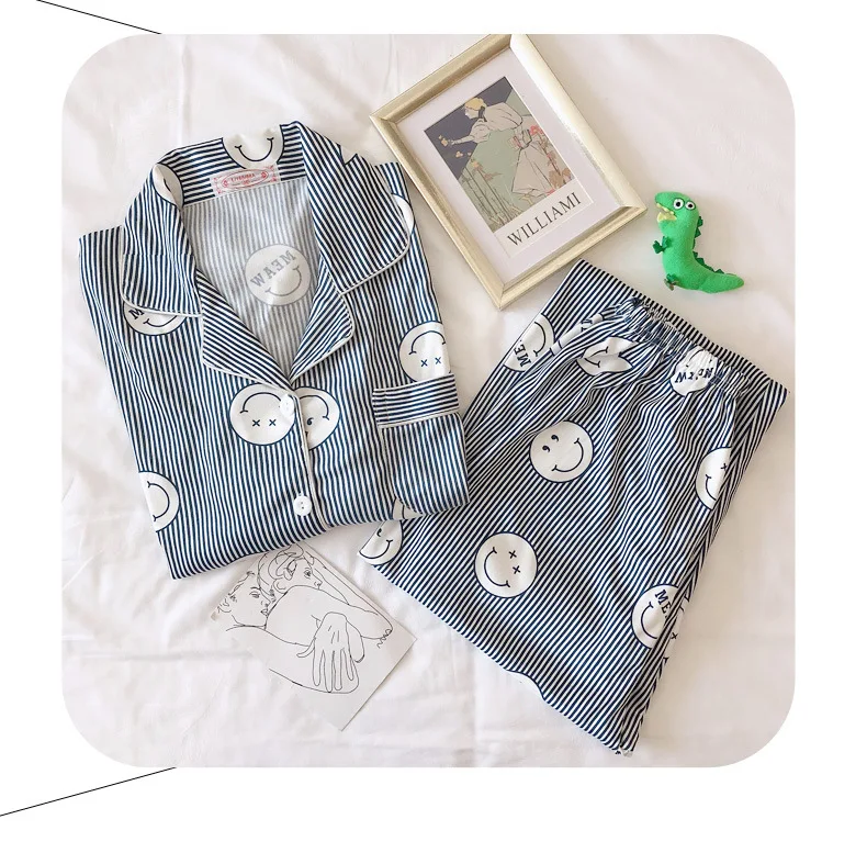 Пижама женская из 2022 хлопка на весну и осень, домашняя одежда с длинными рукавами, женская пижама, простая Свободная Повседневная Пижама, костюм-двойка