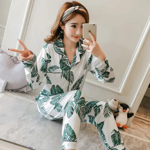 Новинка 2021, пижама на весну и осень, простая и свободная Женская ...