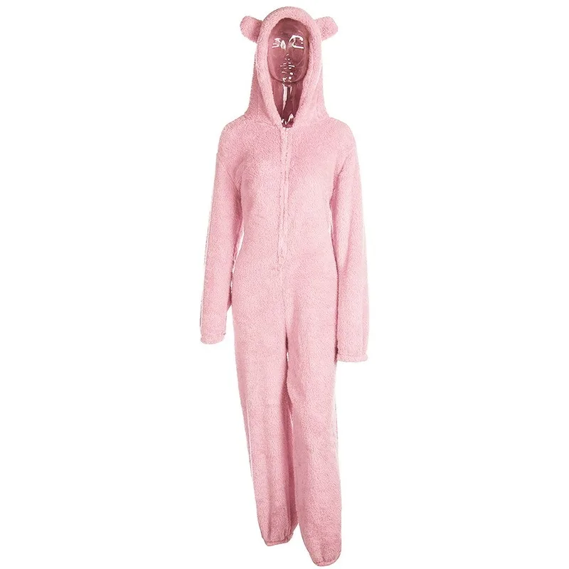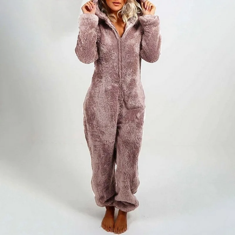 2021 зимняя теплая Пижама, женские комбинезоны, пушистые флисовые комбинезоны, одежда для сна, комплекты с капюшоном, пижамы для женщин, домашняя одежда