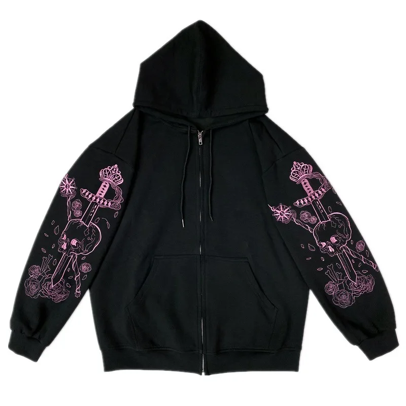 Женская толстовка с капюшоном, винтажная Толстовка большого размера на молнии с длинным рукавом и принтом в виде короны и черепа, Y2K, куртка с капюшоном в готическом стиле, уличная одежда