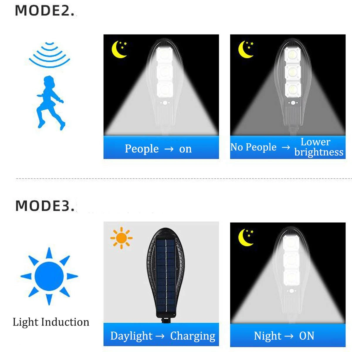 【3 светильник ing Modes】The Солнечный уличный светильник имеет 3 светильник ing режимов: 1: датчик движения (всего яркость светильник. 2: средняя яркость + датчик движения, светильник полной яркости. 3: постоянно горит в темноте. Легко выбрать режимы с кнопками для удовлетворения ваших различных потребностей.