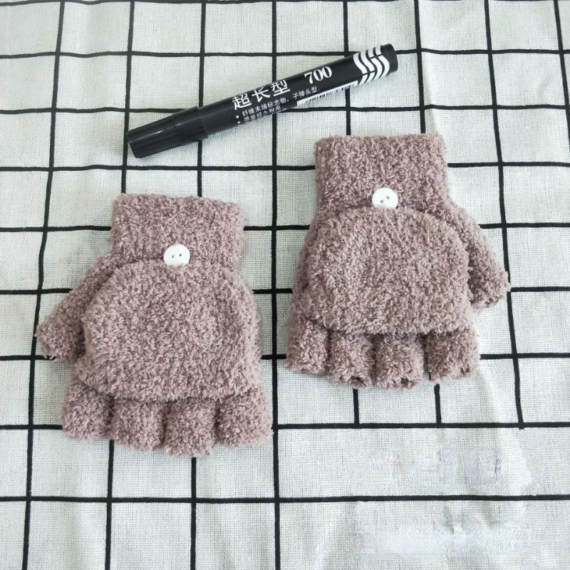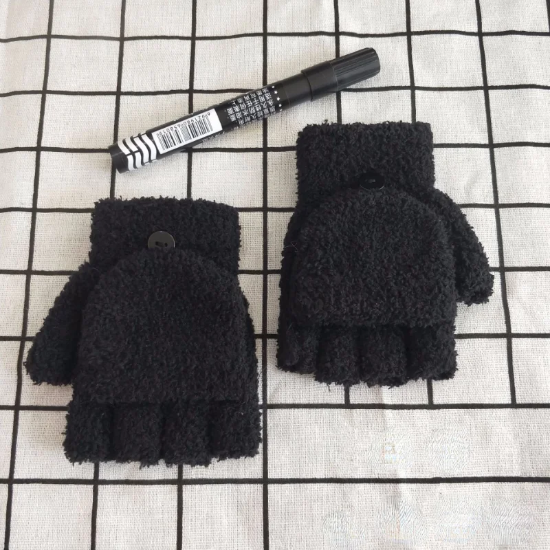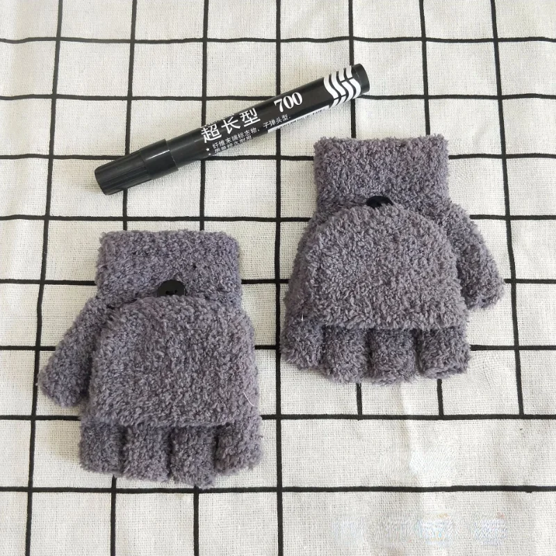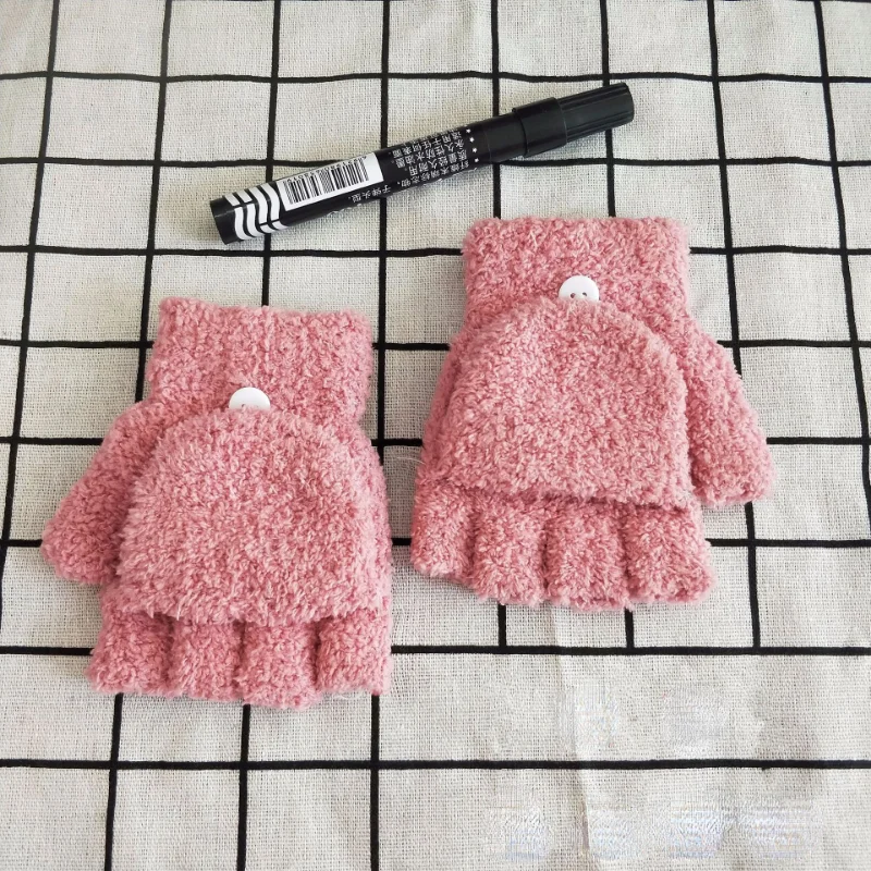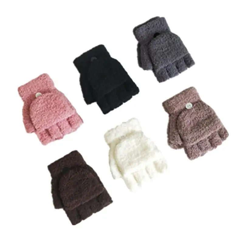 Зимние Детские плотные теплые вязаные перчатки-раскладушки на полпальца Симпатичные простые плюшевые перчатки для мальчиков и девочек для учеников 3-10 лет