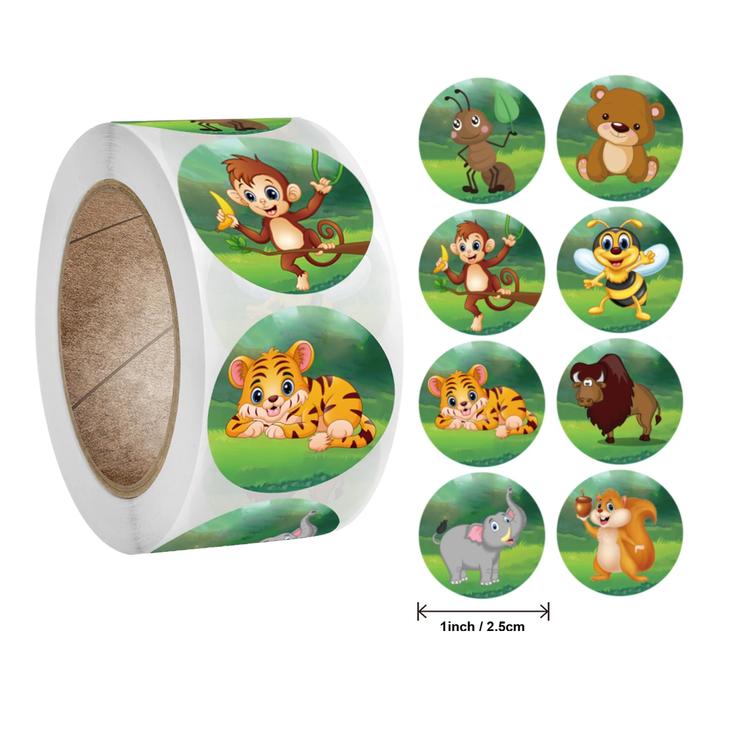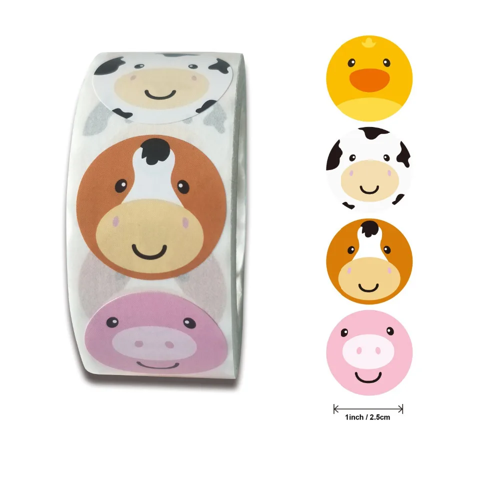 Наклейки в виде животных, 1 дюйм, 100-500 шт., стикер для канцелярс...