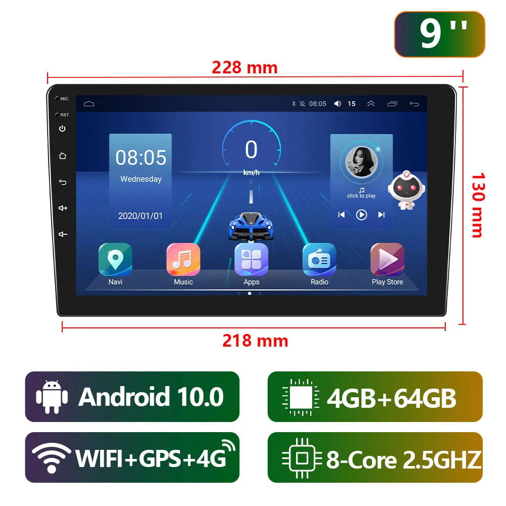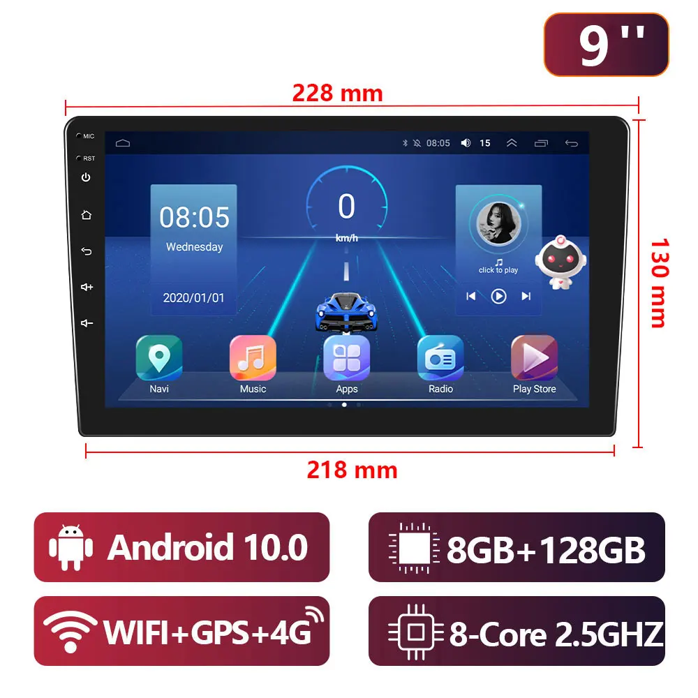 Мультимедийная магнитола Podofo, Автомобильная Мультимедийная система на Android, 7, 9, 10 дюймов, 8 + 128, для Toyota, Nissan, Honda, Volkswagen, Subaru, радар, Ford, Kia, Hyundai, Renault