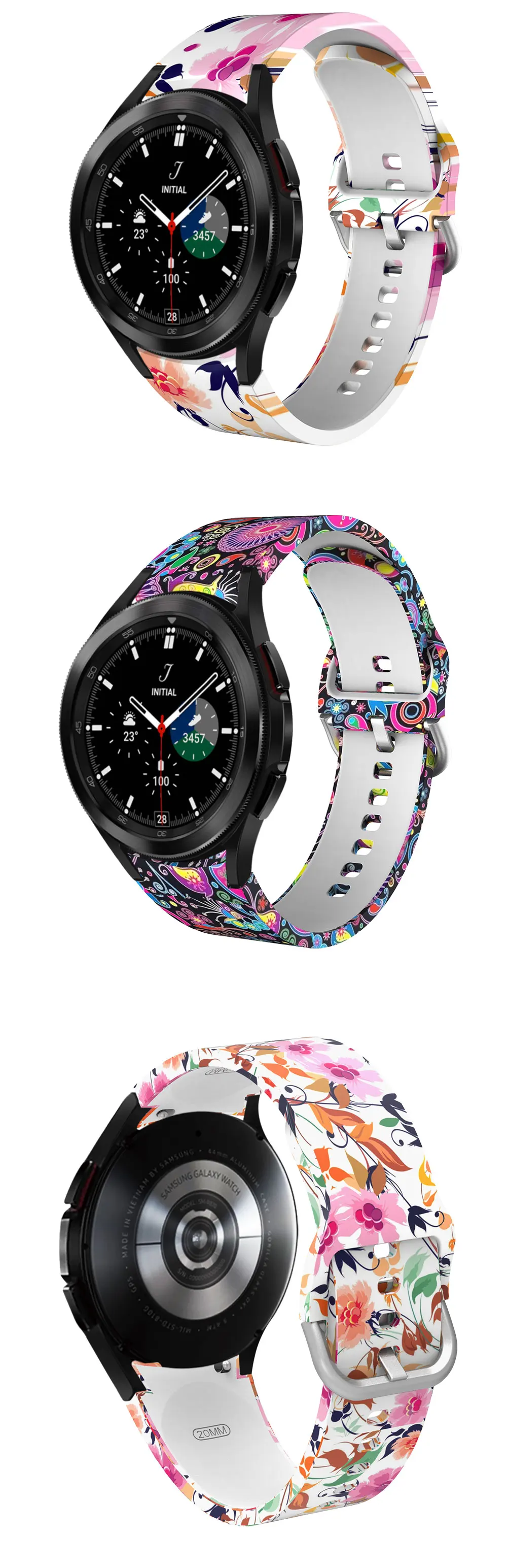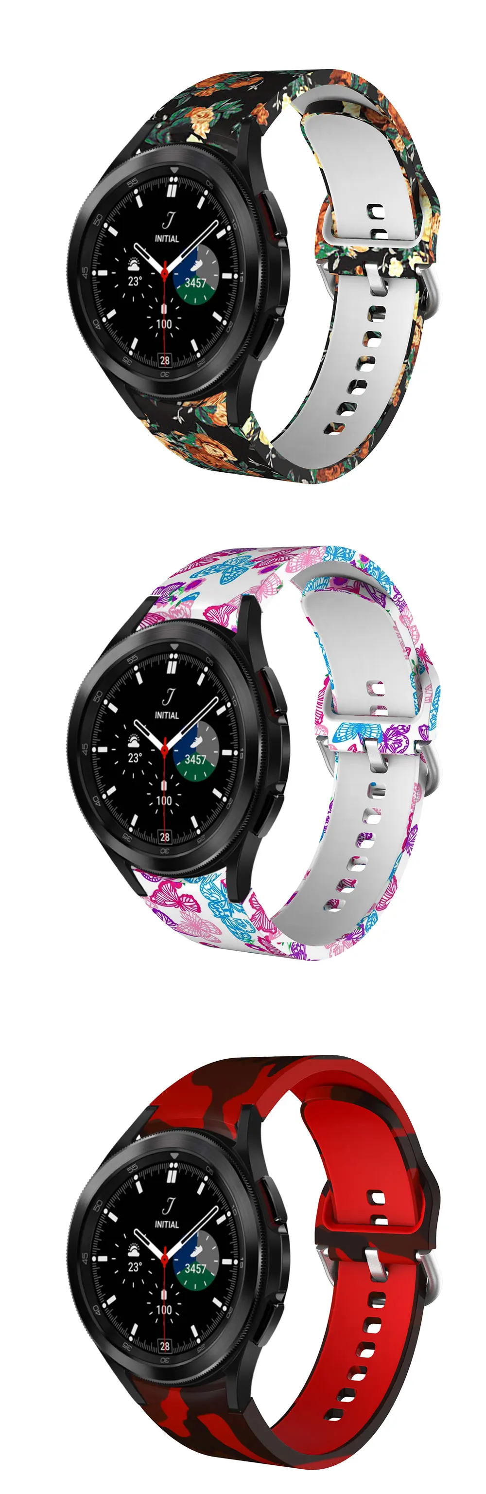 Оригинальный ремешок 20 мм для часов Samsung Galaxy Watch 4 Classic 46 42 мм, браслет для умных часов с принтом, с изогнутым концом для наручных часов 4 44 40