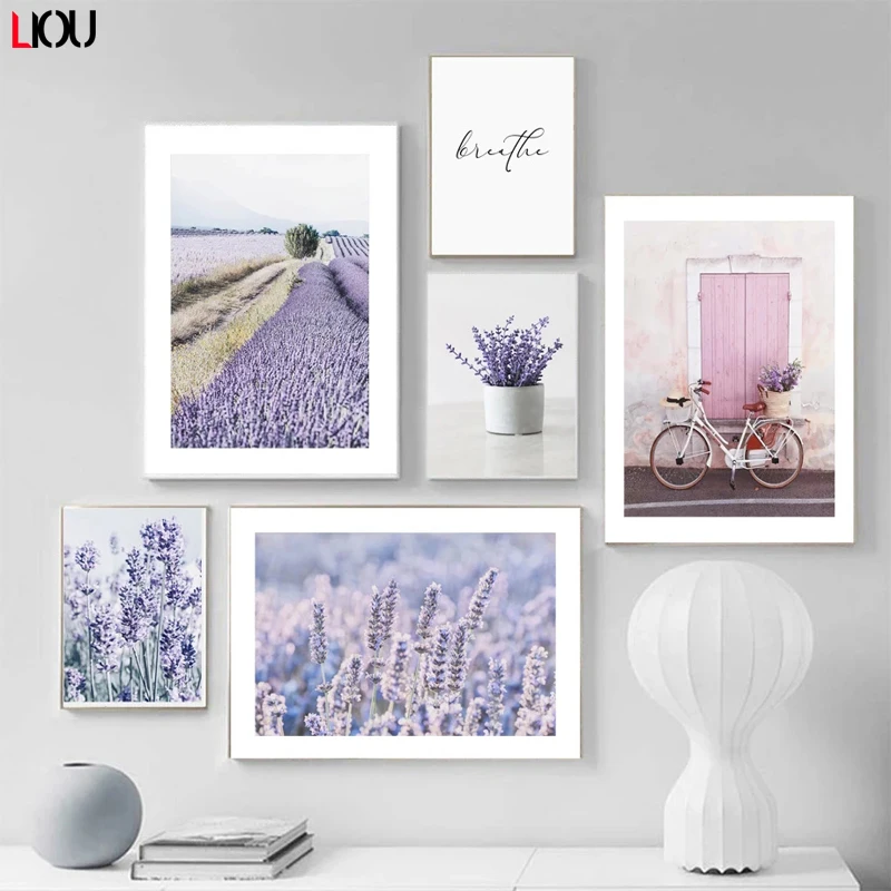 Картина из фиолетового холста для Морского Пейзажа, современный плакат лаванды для сада и гостиной, Настенный декор в скандинавском стиле