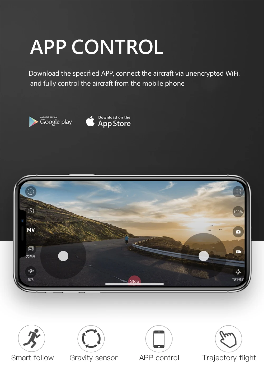 -Встроенная широкоугольная камера с двойным разрешением 1080P или 4K HD, потрясающе настроена для съемки потрясающих фотографий и видео с неба.