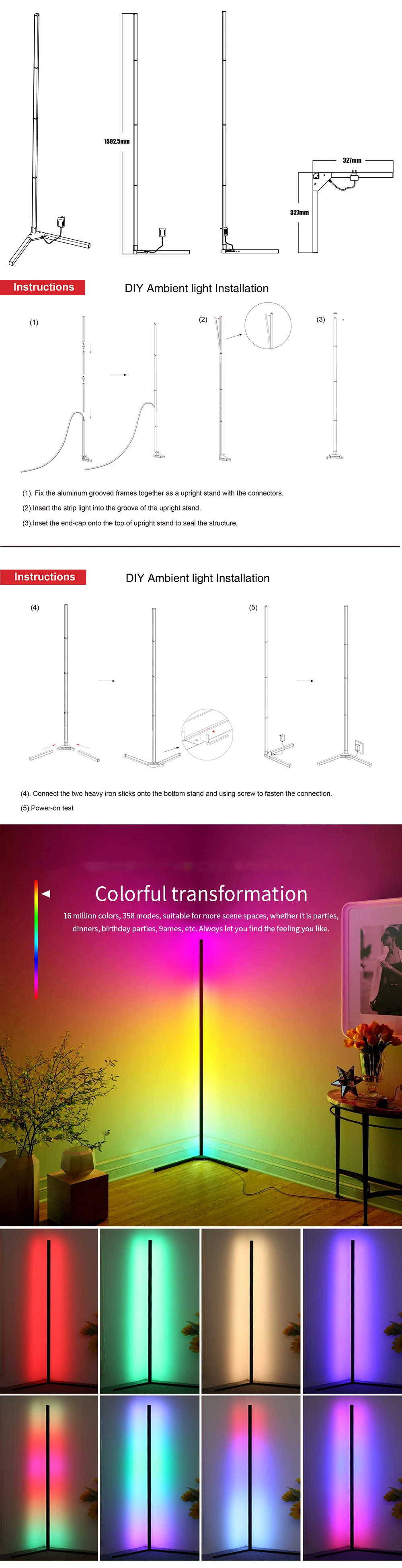 RGB светодиодная угловая Напольная Лампа для спальни, прикроватная ...
