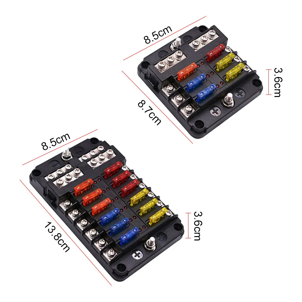 Блок предохранителей для автомобильного держателя лезвия, 6 путей, 12 путей, Модифицированная Клеммная колодка, предохранитель светодиодный светодиодной сигнальной лампой для автомобиля, лодки, морского трика, 12 В, 32