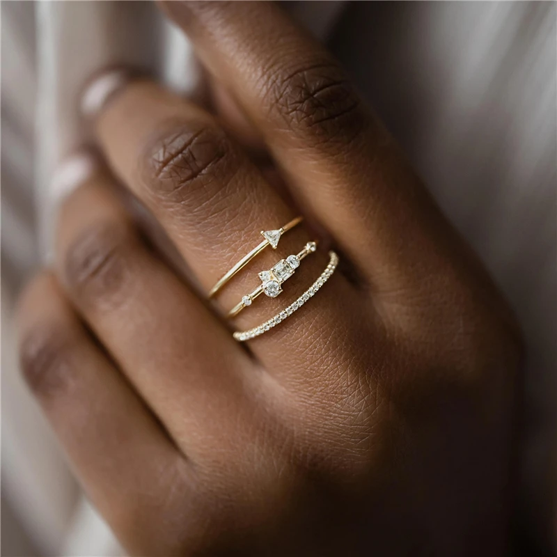 【Тип товара 】: минимализм треугольные Кристальные золотые кольца