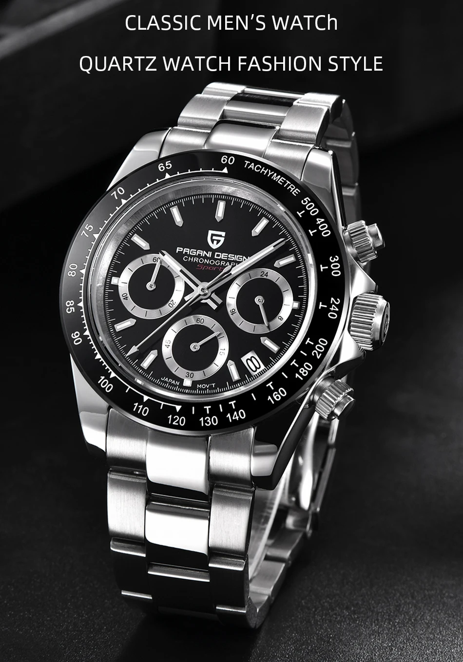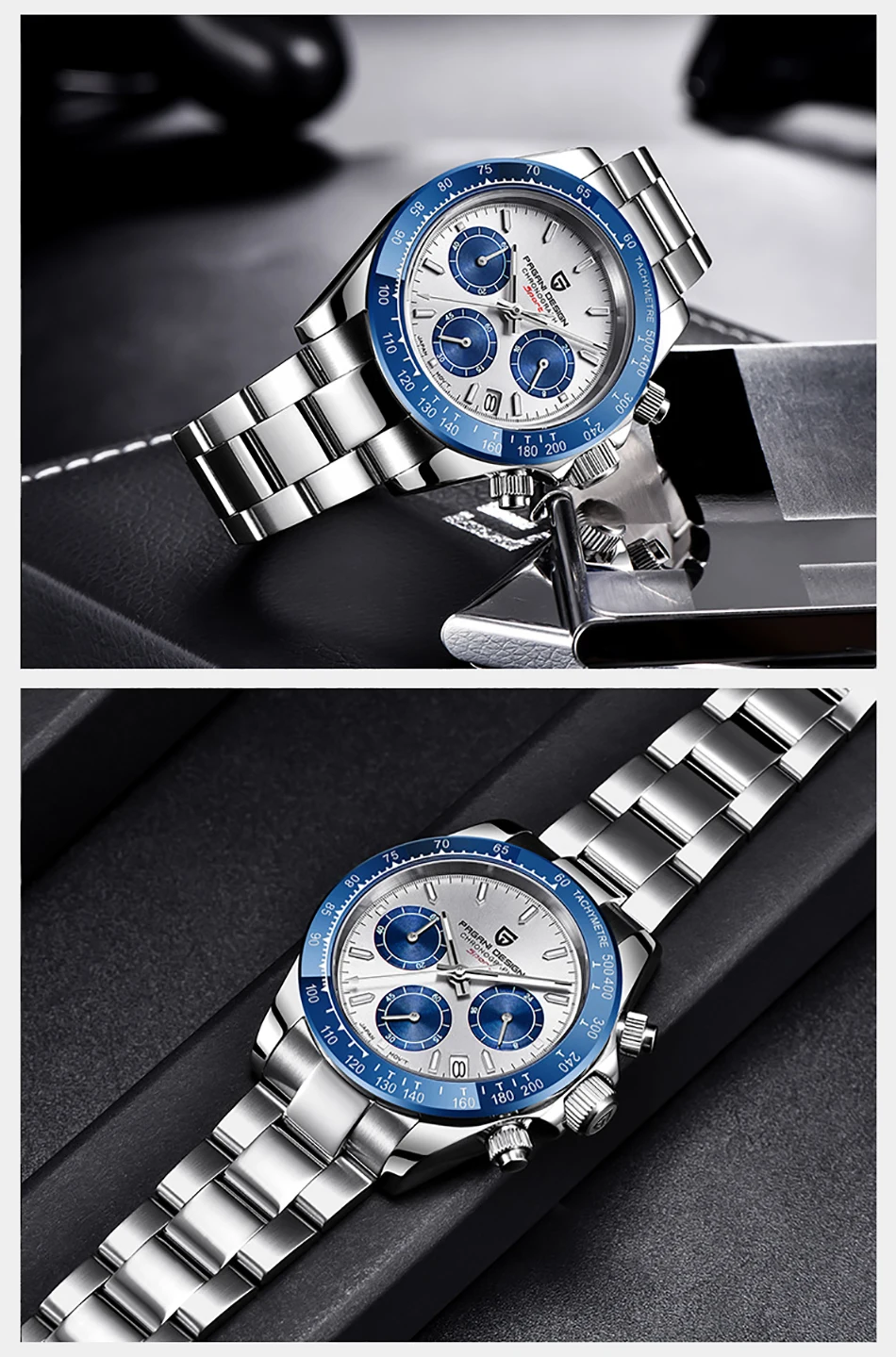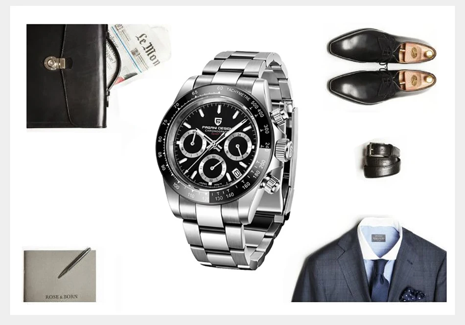 Часы PAGANI Мужские кварцевые с хронографом, водонепроницаемые, 100 м