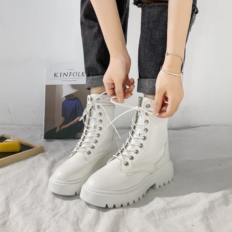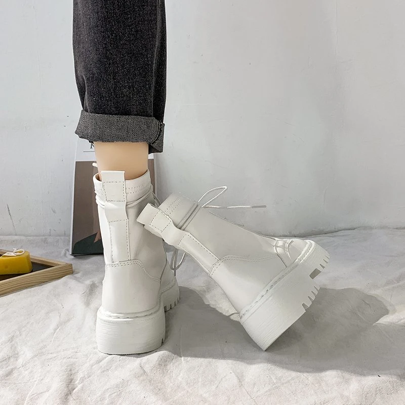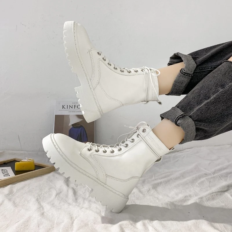 Ботинки женские кожаные в готическом стиле, на среднем каблуке, бел...