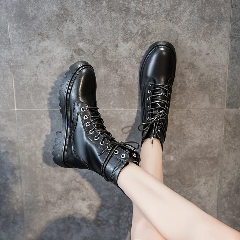 Ботинки женские кожаные в готическом стиле, на среднем каблуке