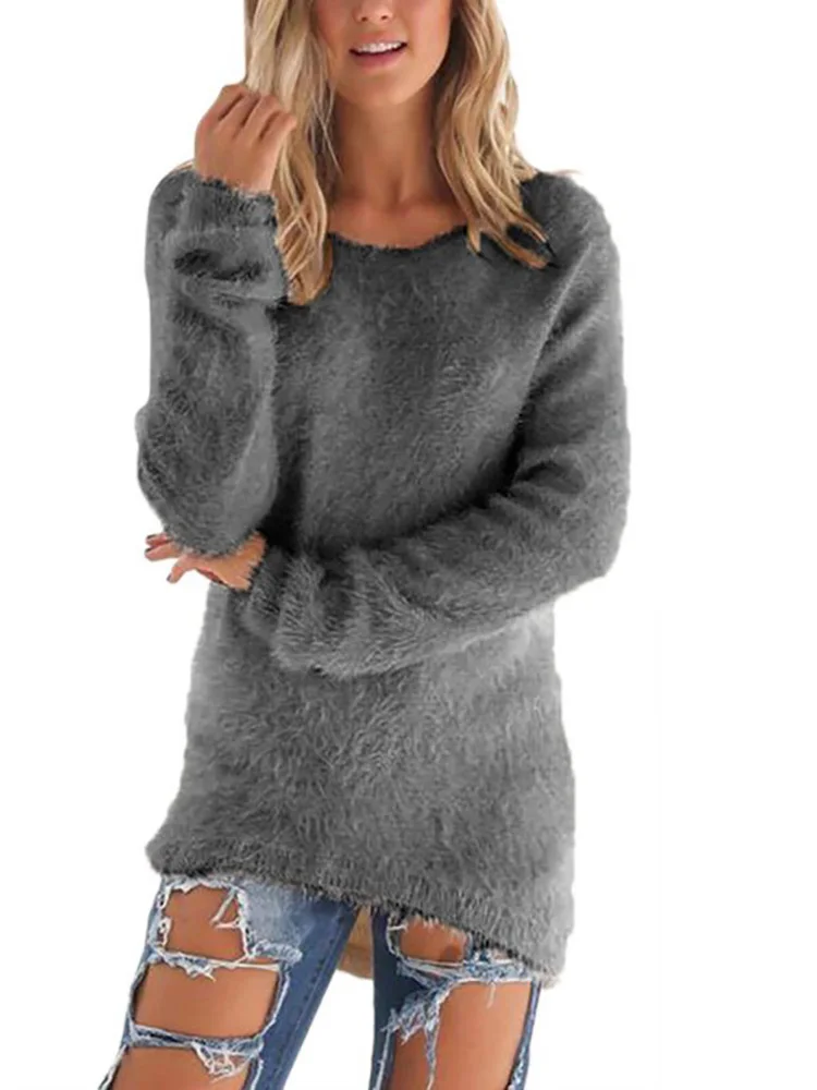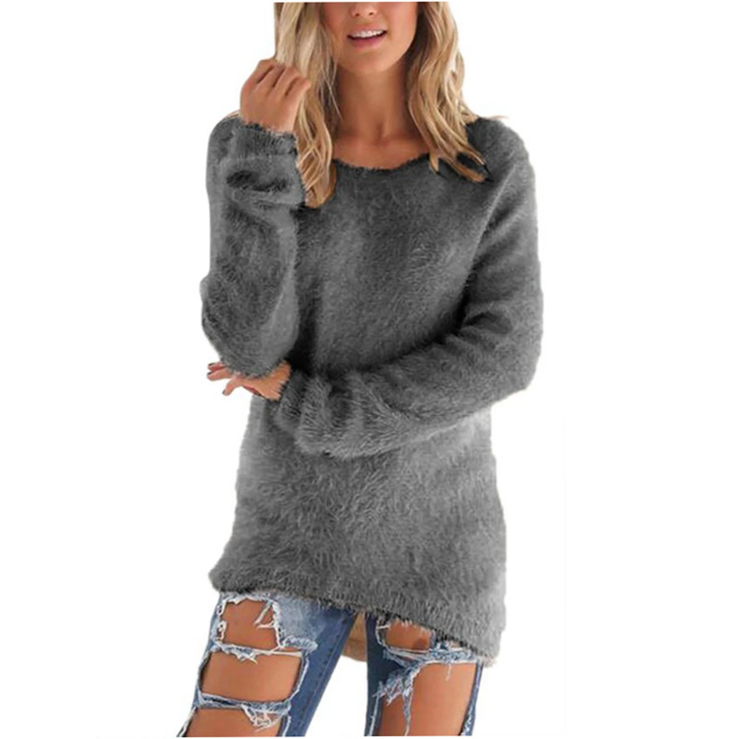 Свитер женский с круглым вырезом, Пушистый Тонкий пуловер свободног...