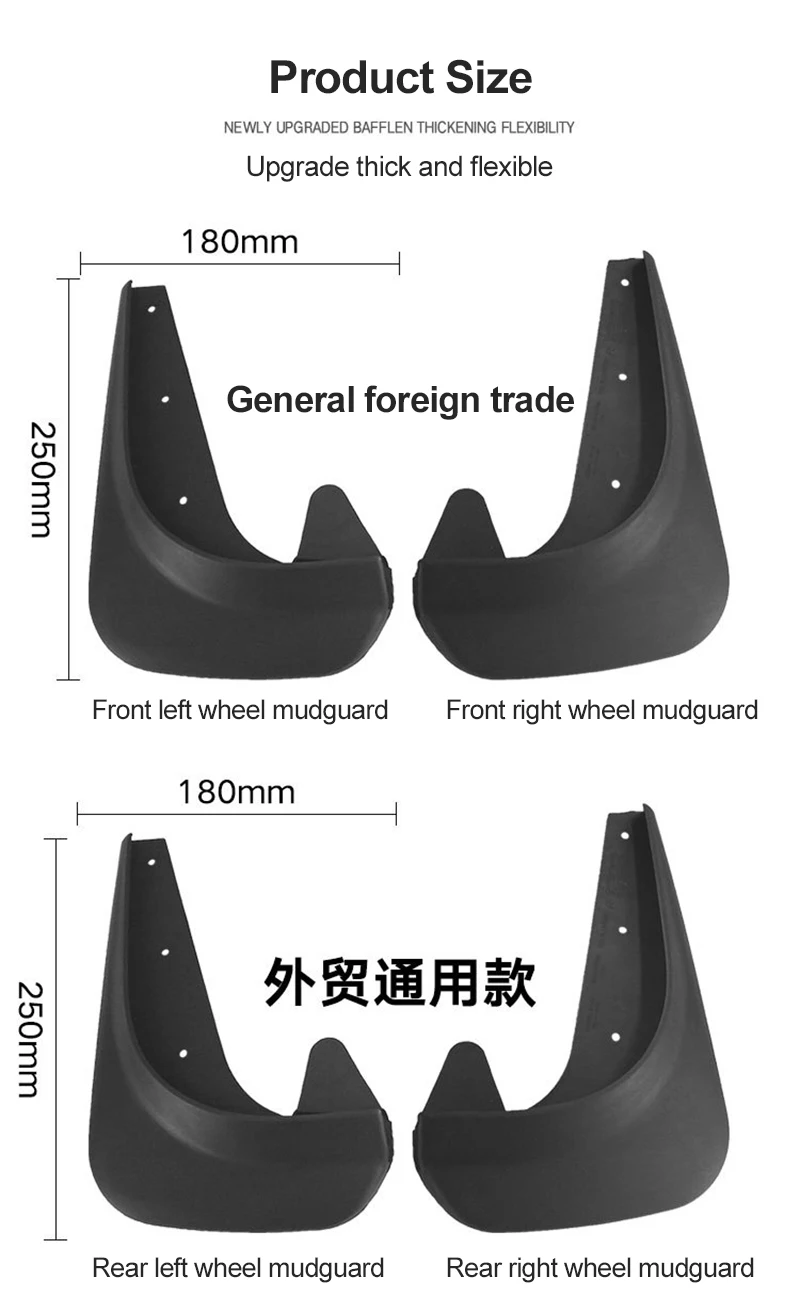 * Эти износостойкие грязевые предохранители легко сочетаются с автомобилями и минимизируют риск попадания грязи, дорожных обломков и каменных сколов с передних и задних шин.