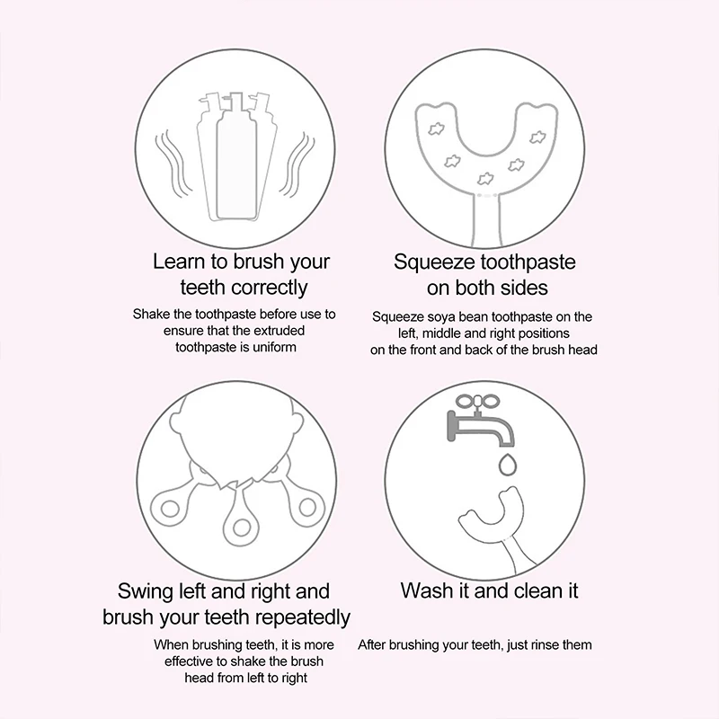 Оберточная чистка зубов на месте.4. Качественные ПП и силиконовые материалы, мягкие, прочные и долговечные. Подходит для десен.5.