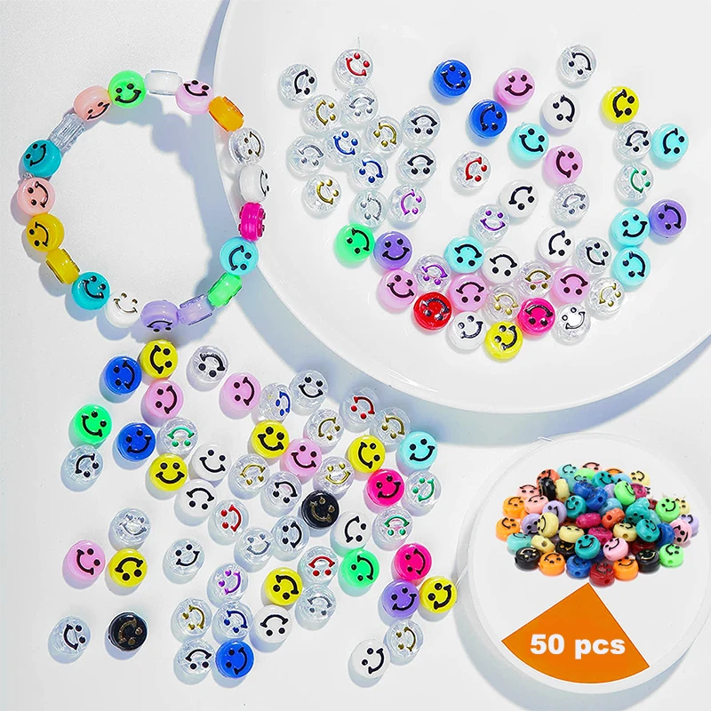 50 шт.лот 6*10 мм круглые акриловые разделенные бусины, бусины со смайликом для изготовления ювелирных изделий сделай сам, шармы, браслет, ожерелье, оптовая продажа