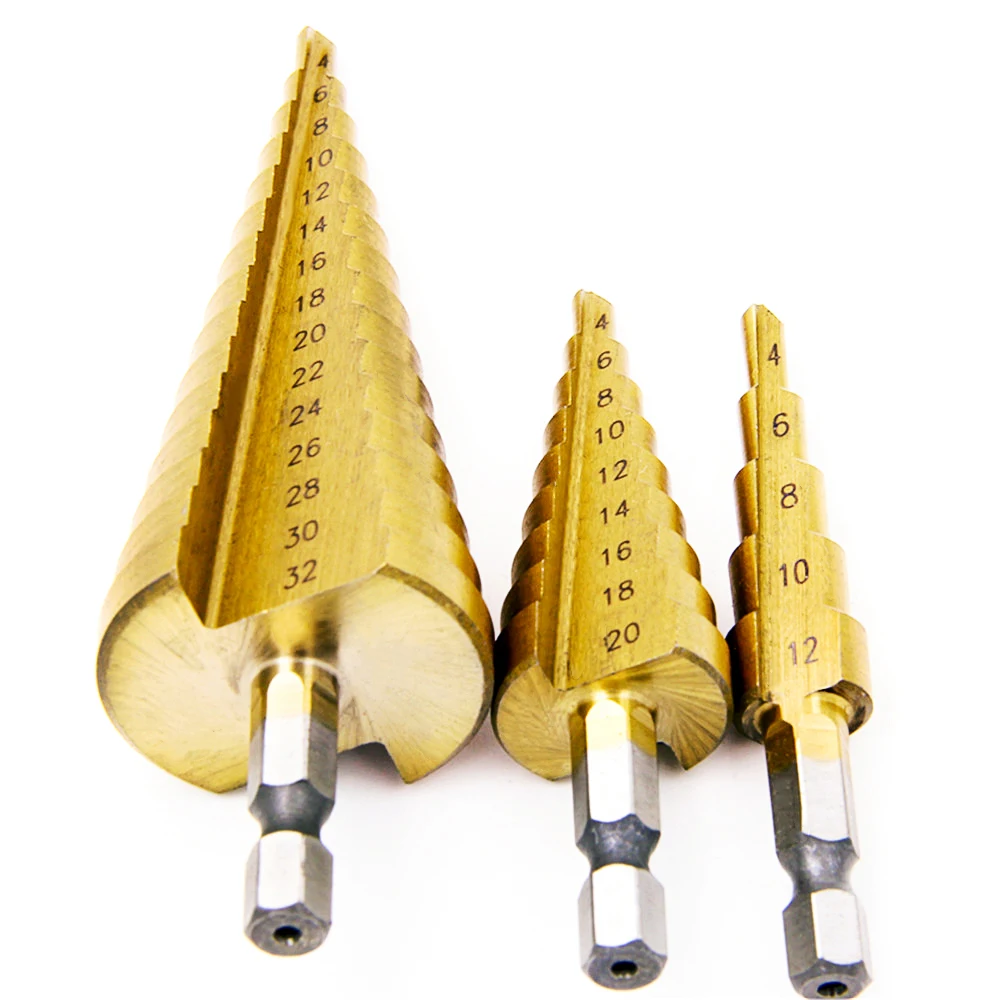 3 шт.компл. ступенчатое сверло из быстрорежущей стали с прямым пазом, сверло с титановым покрытием для дерева и металла, набор инструментов для сверления сердечника, 3-12 мм, 4-12 мм, 4-20 мм