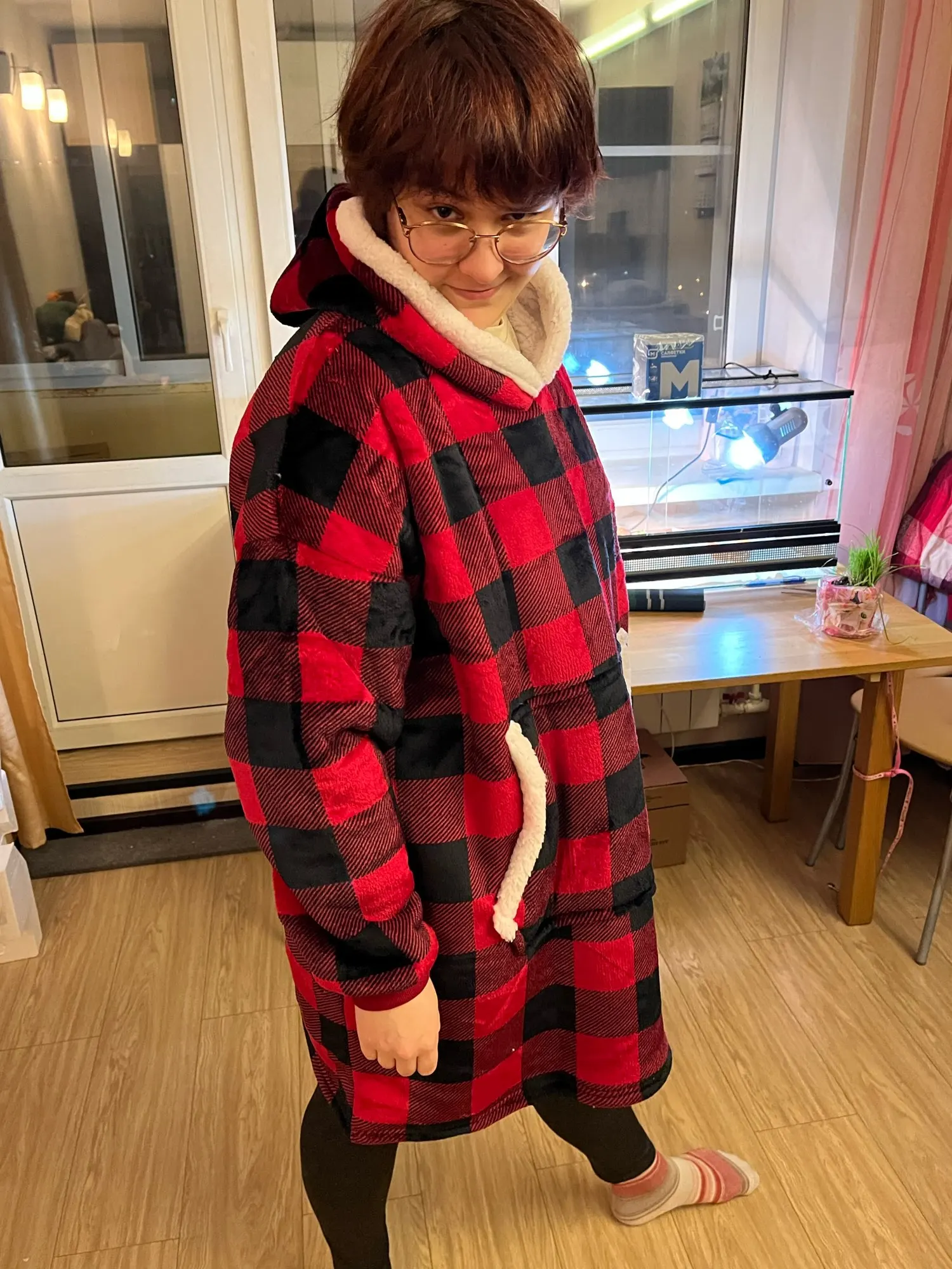 Зимнее одеяло HMSU оверсайз с рукавами Толстовка Оверсайз флисовые теплые толстовки свитшоты гигантское ТВ одеяло Женская толстовка Халат