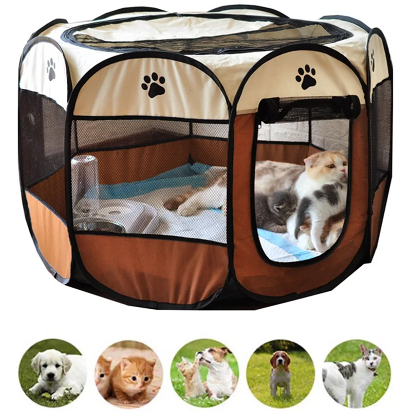 Переносная складная палатка для домашних питомцев, домик для собак, восьмиугольная клетка для кошек, манеж, вольер для щенков, простое в использовании ограждение, уличный домик для больших собак