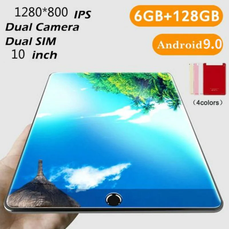 Новый дизайн 2022, 10-дюймовые Планшеты Android, 6 ГБ ОЗУ, 128 Гб ПЗУ, Android 9,0, 10-ядерный IPS ЖК-дисплей, 4G, телефонные звонки, SIM-карта, WiFi планшет ПК