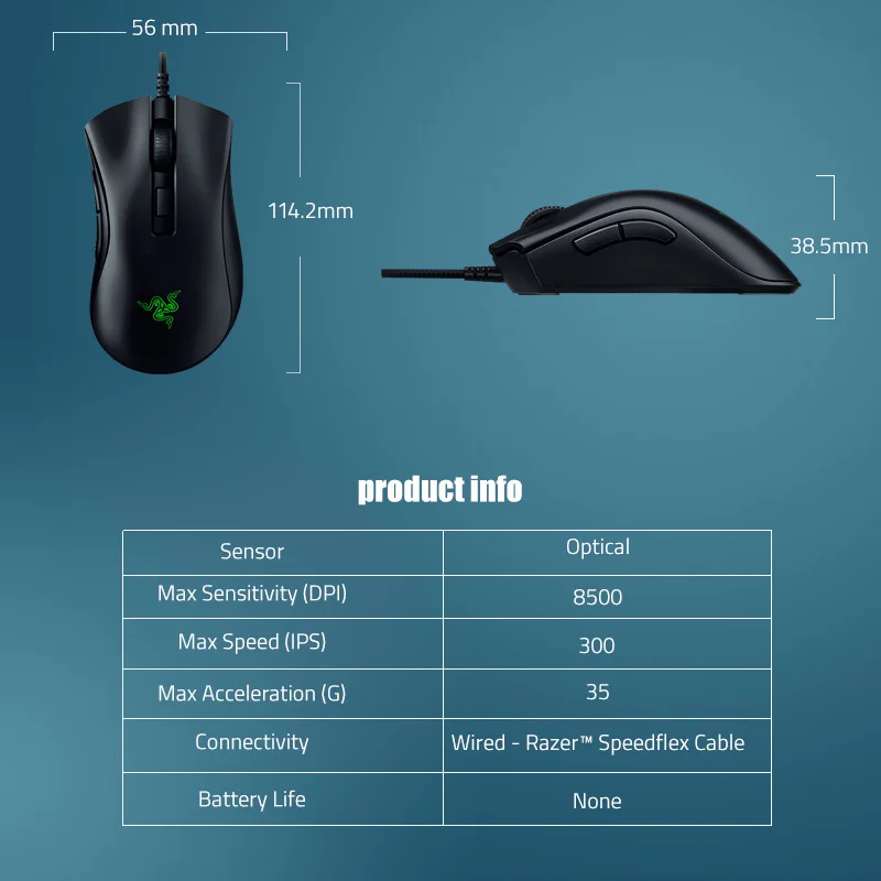 Мышь игровая Проводная AoonKen Razer DeathAdder, 6400DPI, оптический сенсор, 5 кнопок