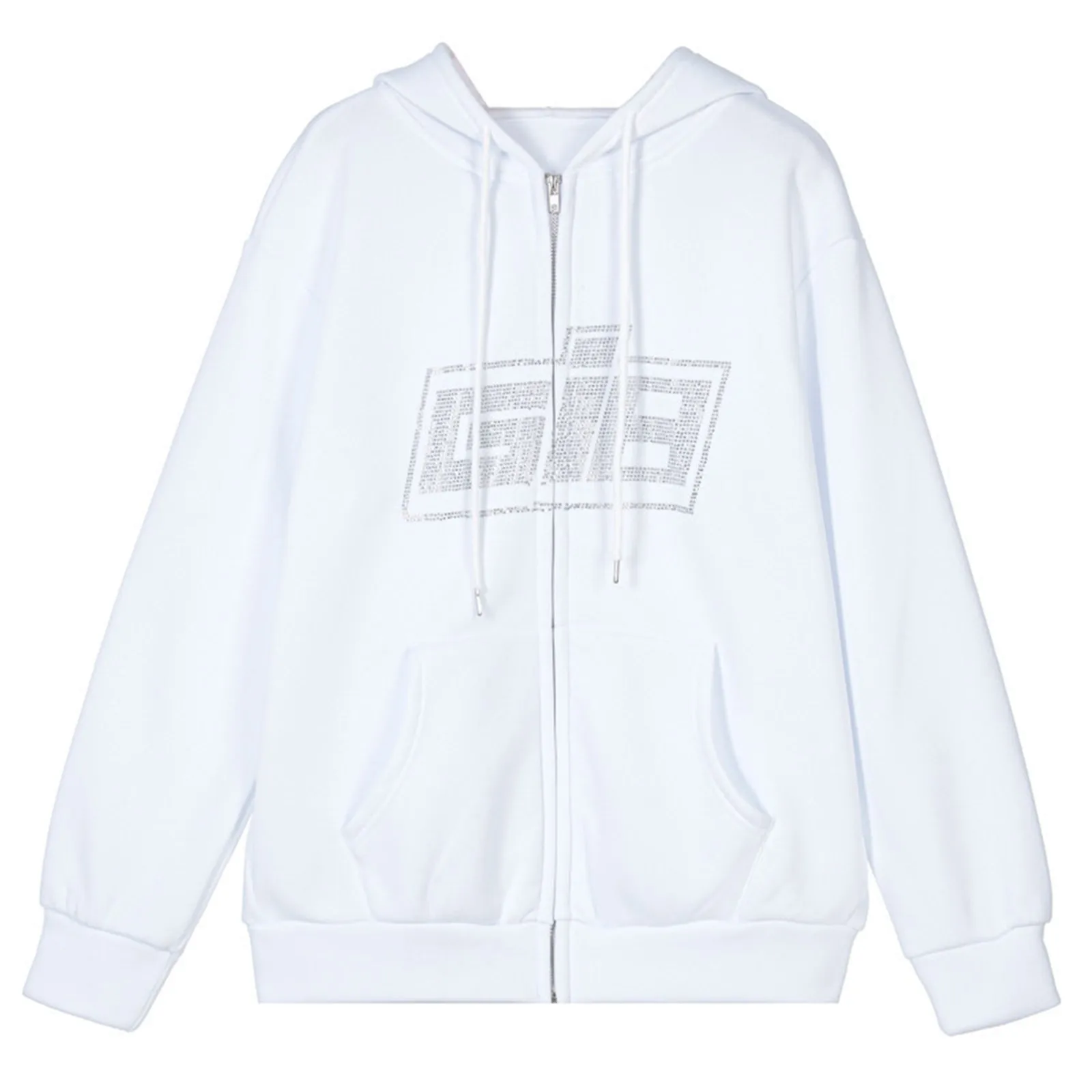 Y2K Harajuku Стразы с капюшоном на молнии в Корейском стиле свободн...