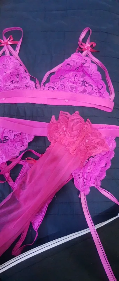 кружева выглядят не совсем качественно, брала красную модель с чулками лифчик нормально, трусики - немного не понравился их дизайн сзади (на картинке не было видно) чулки маловаты на бедрах