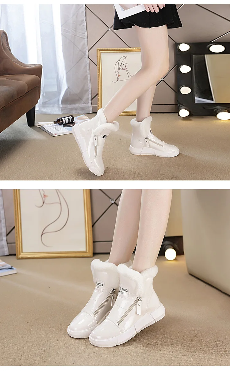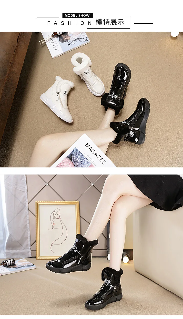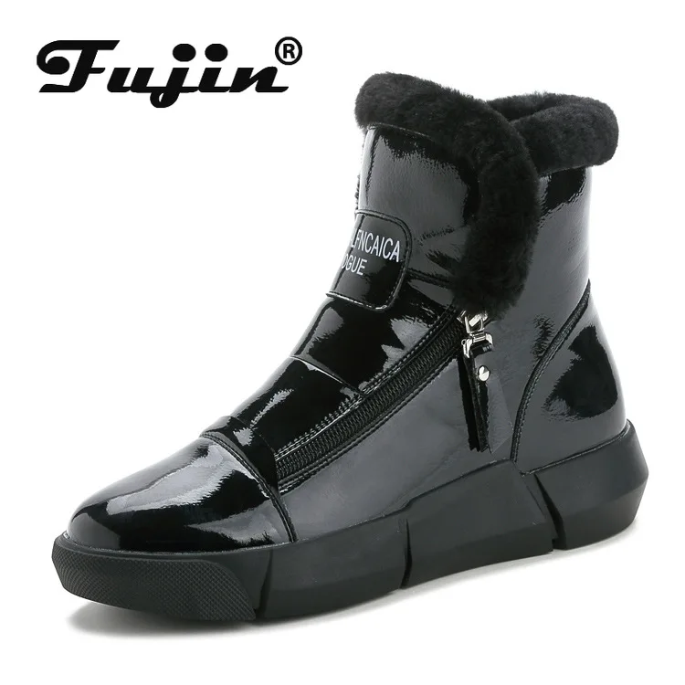 Fujinплюшевые женские зимние ботинки; Ботинки на платформе; Модная обувь; Коллекция 2021 года; Женские зимние ботинки; Водонепроницаемые кожаные теплые ботинки на молнии