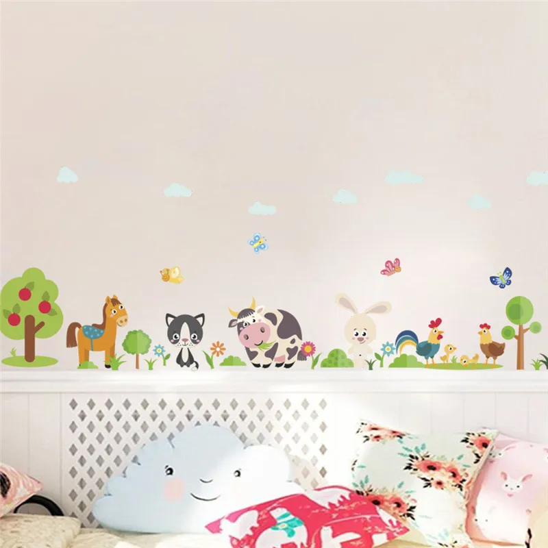 Милые настенные наклейки с животными на ферму, украшение для дома, для детской комнаты, спальни, коровы, лошади, свиньи, курицы, роспись, искусство сделай сам, ПВХ наклейки, плакаты