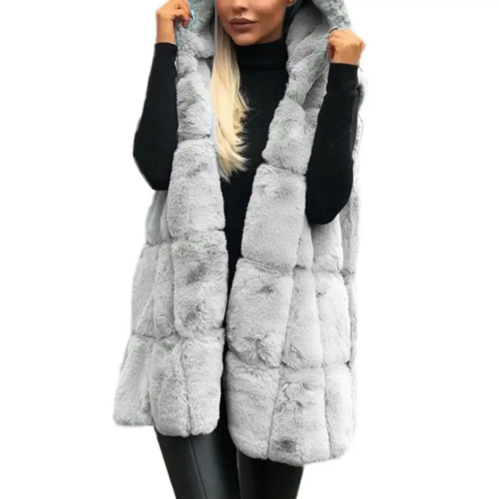 Женский жилет, однотонный жилет из искусственного меха, повседневный жилет с капюшоном, женский жилет на осень и зиму