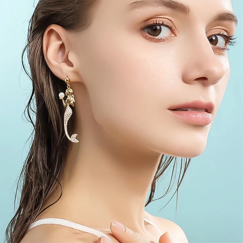 Милые стразы серьги-капельки с кристаллом русалки и жемчугом для женщин серьги-гвоздики с длинной подвеской