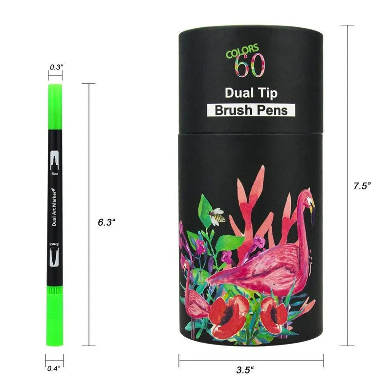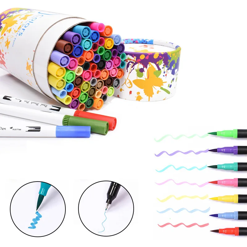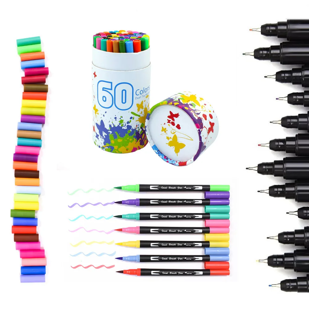 60 цветов двойной наконечник кисти ручка