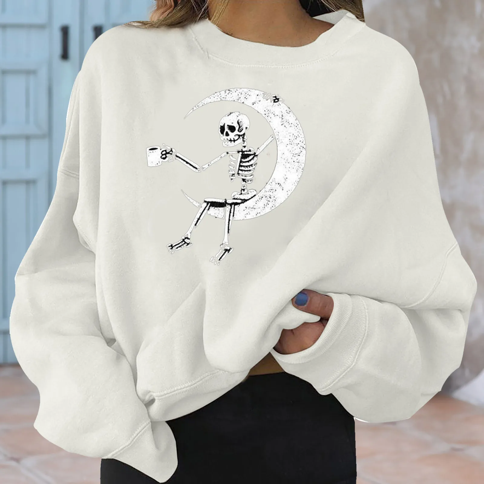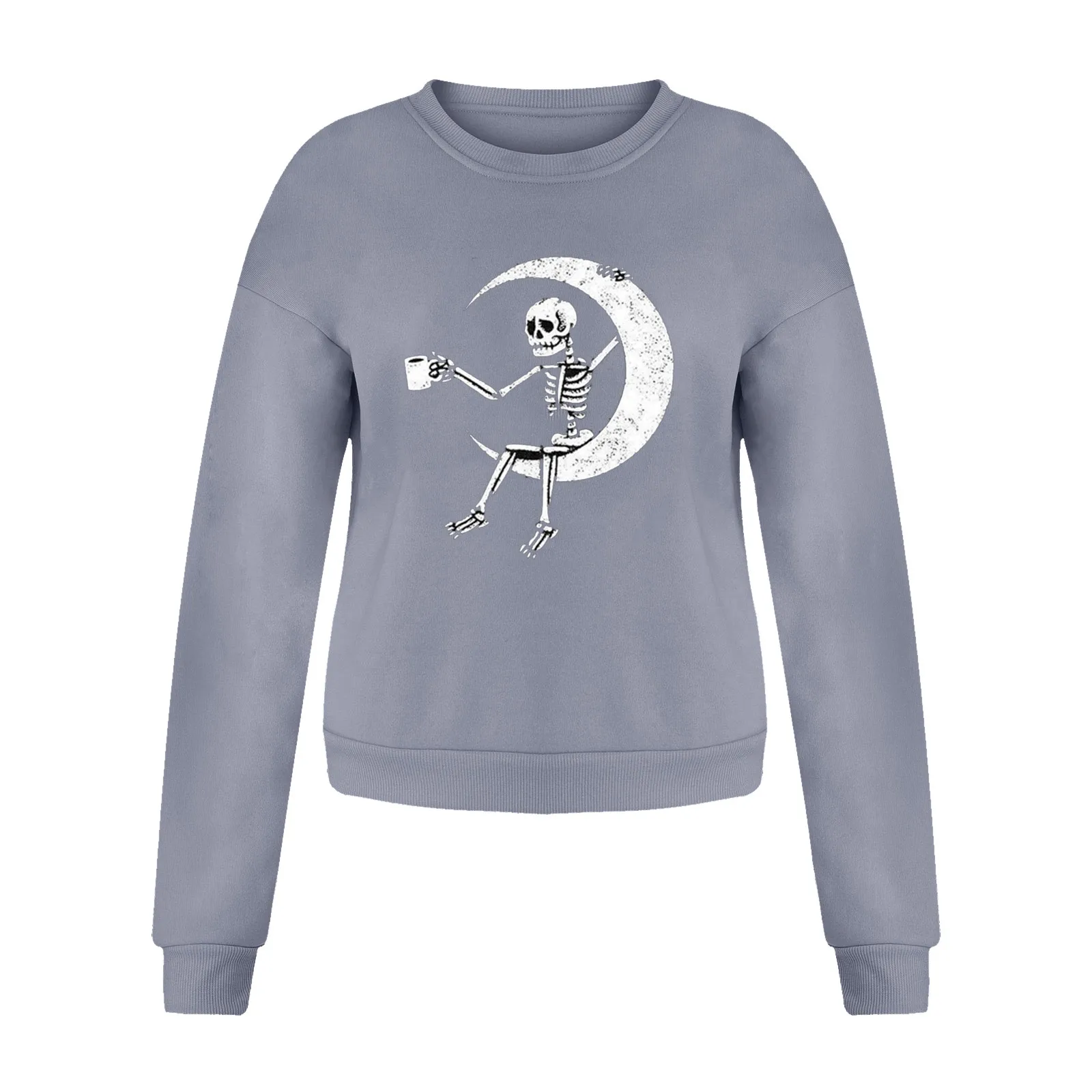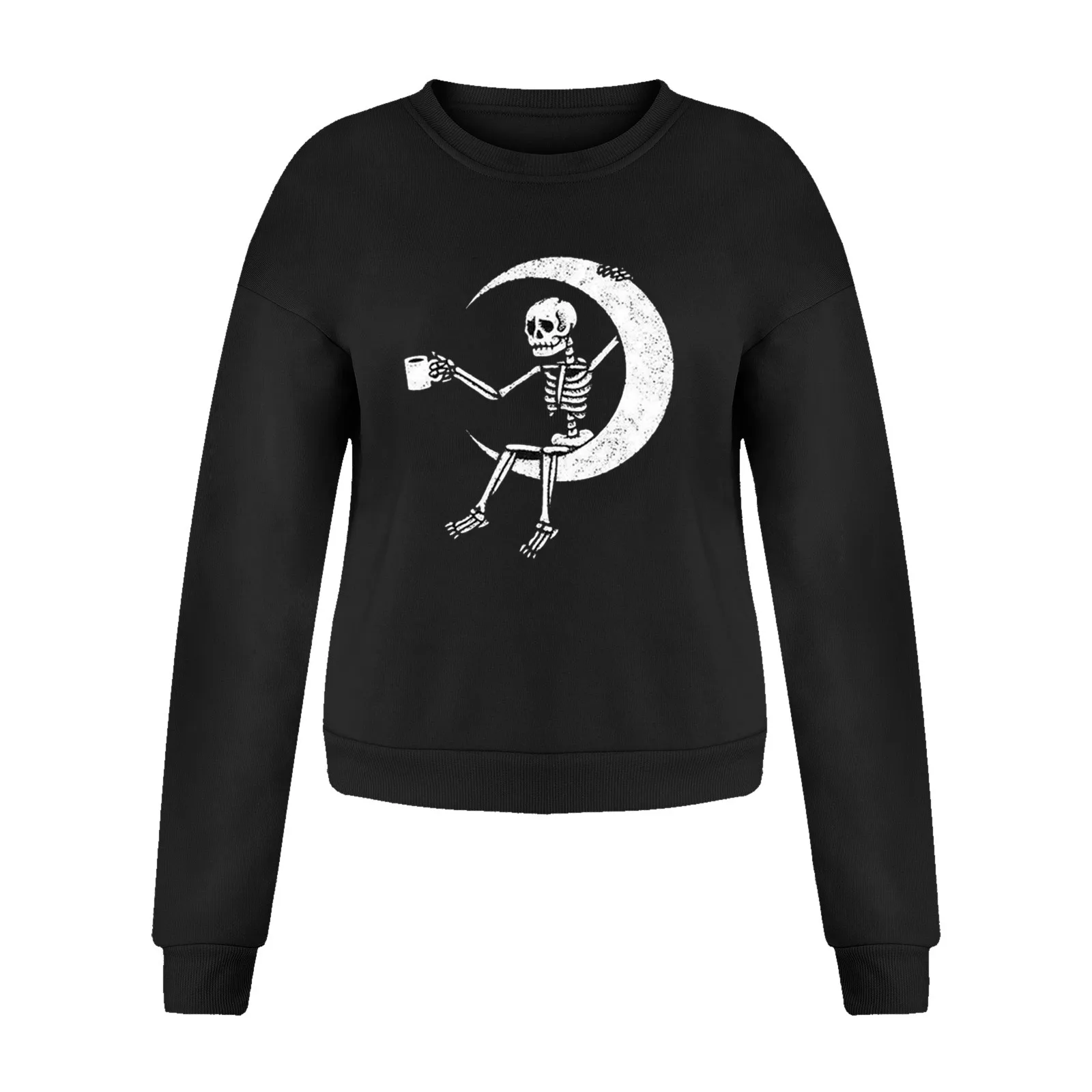Женская толстовка с длинным рукавом, круглым вырезом и принтом черепа