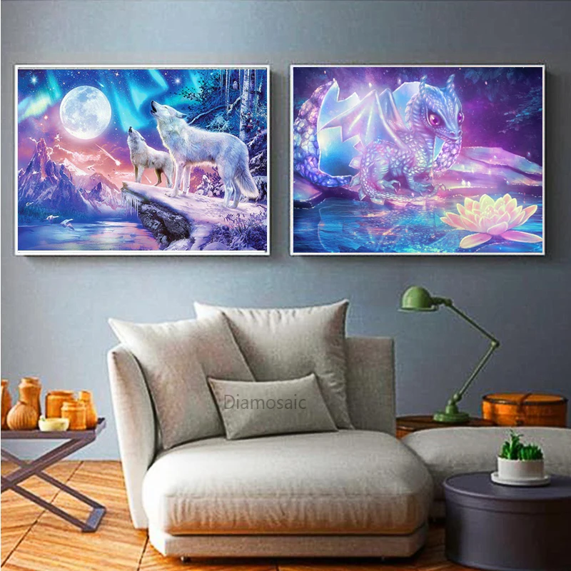 Алмазная 5D картина сделай сам, полноразмерная Мозаика из страз, с изображением дракона, волка, вышивка крестиком, картина для домашнего декора, подарок 3d