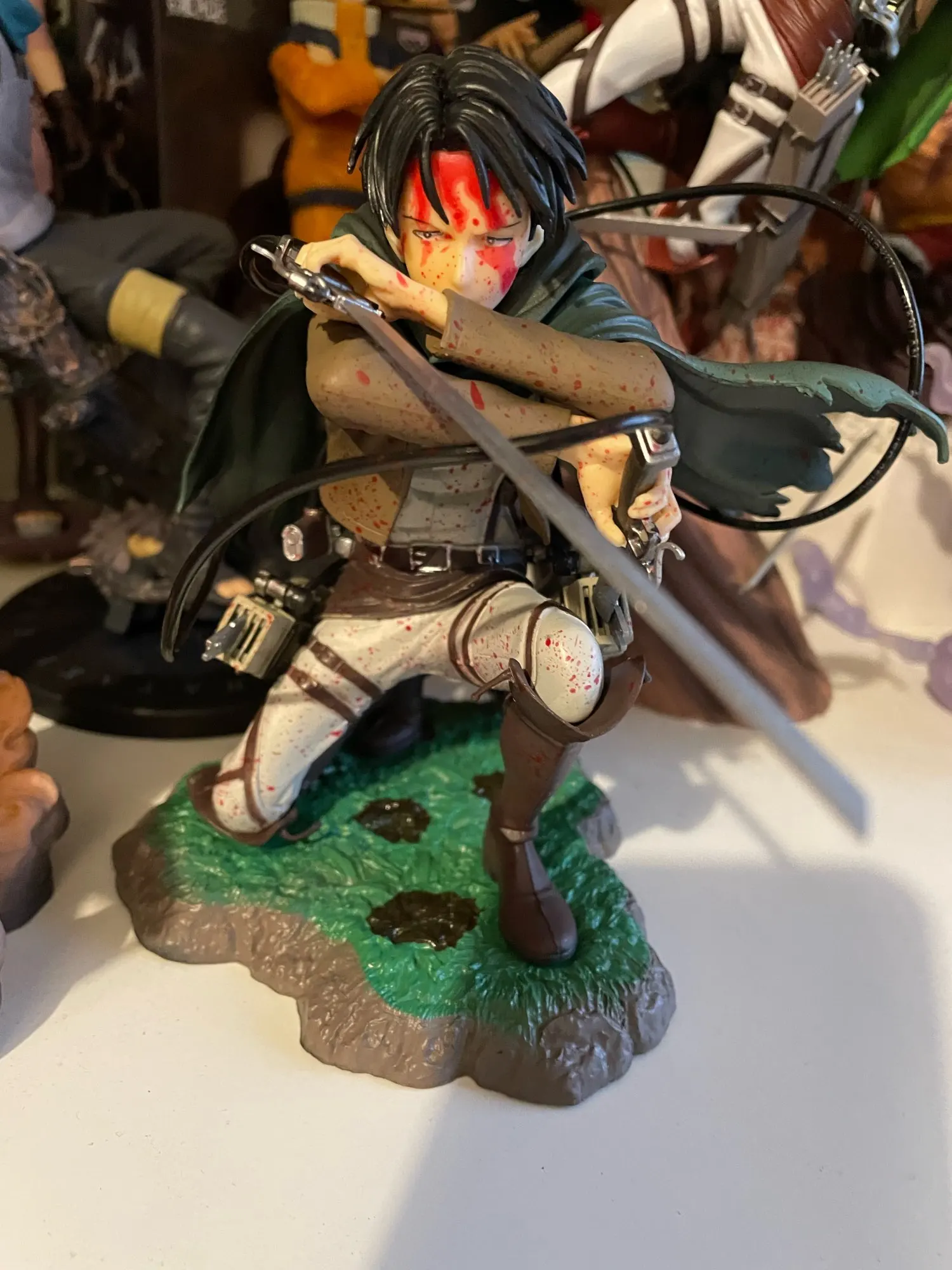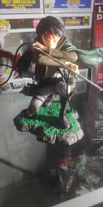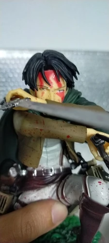 Прибыл в коробке, держится очень хорошо. За цену, которую я думал, было лучше, чем в деталях. Лицо Леви не то же самое, мечи и ручка не такие, как на фото