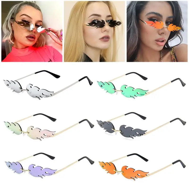 Очки солнцезащитные женские без оправы, шикарные модные солнечные очки в форме огненного пламени, аксессуары для велоспорта