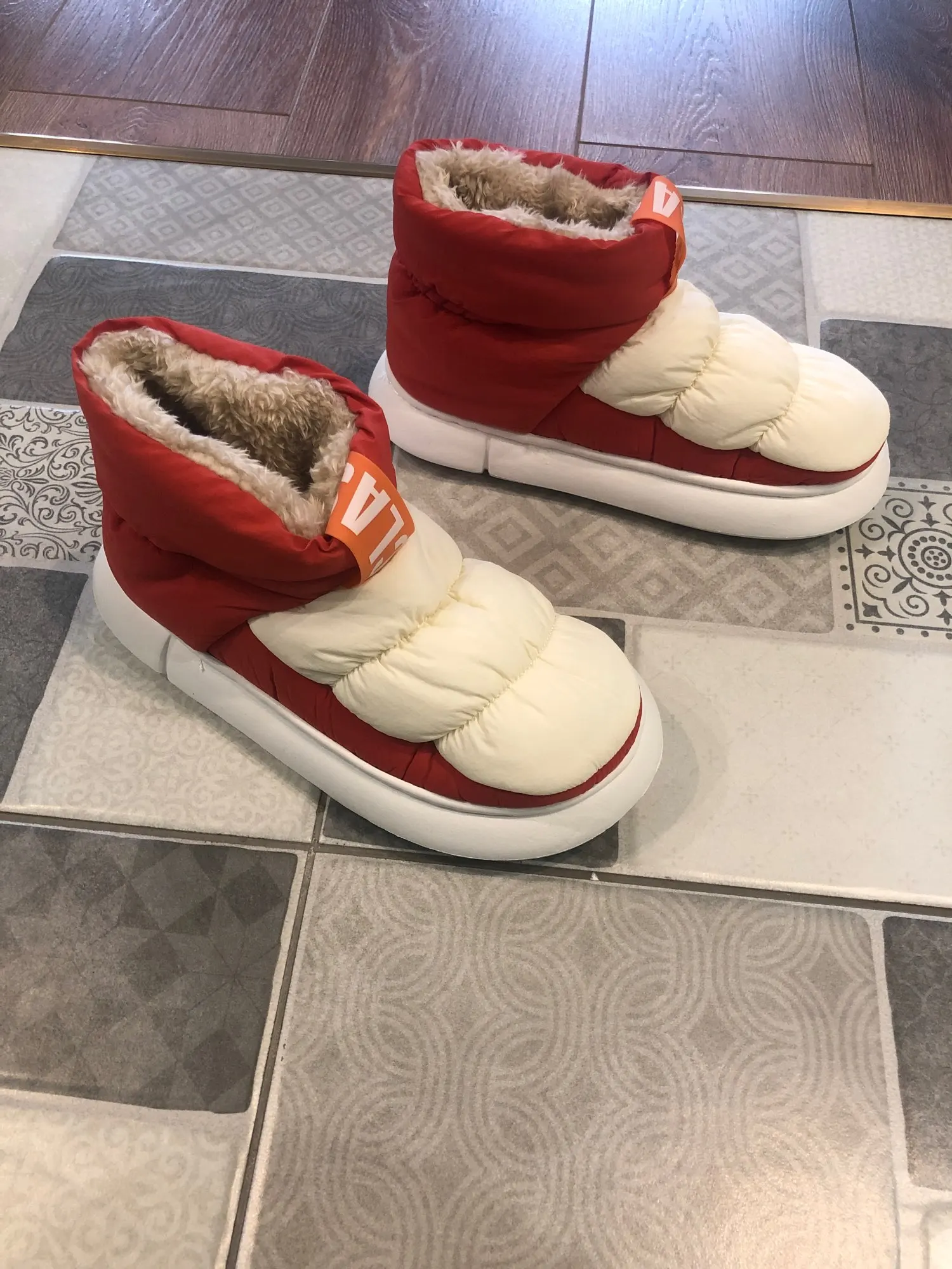Привольные ботинки. Не знаю уж на сколько они подойдут на московскую зиму, но поздней осенью должно быть нормально. Подошва мягкая, внутри приятные. На мой Российский 36 размер взяла 36-37, не давят, но впритык. Сверху болоний, внутри искусственный мех, как на мягкой игрушке.